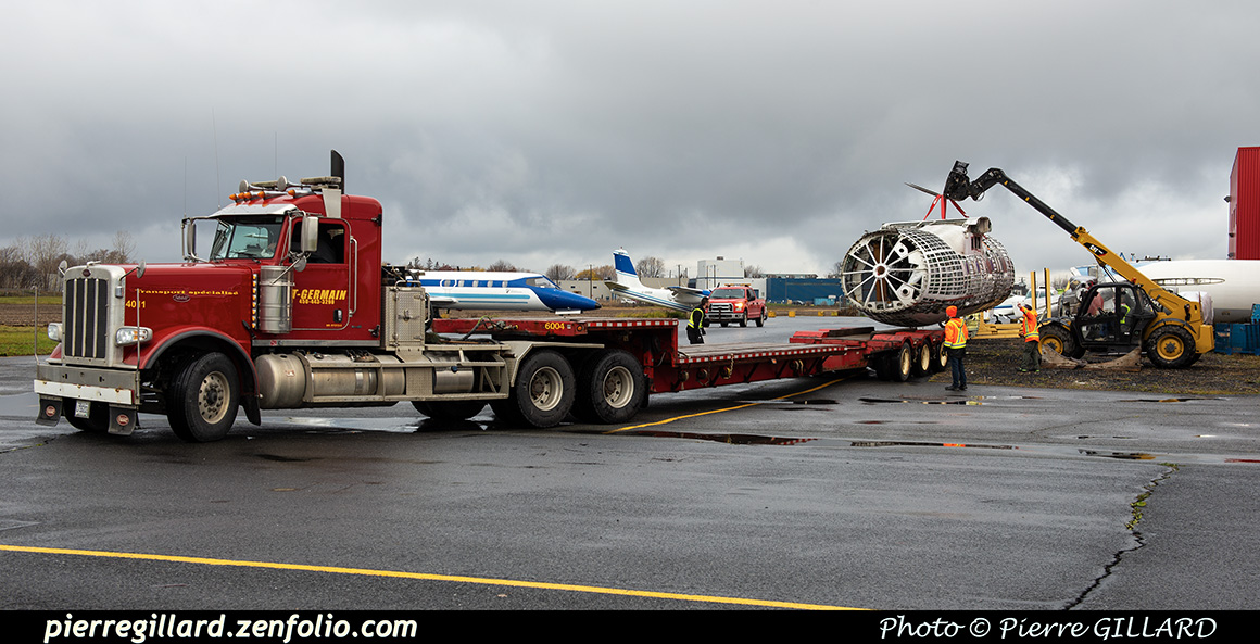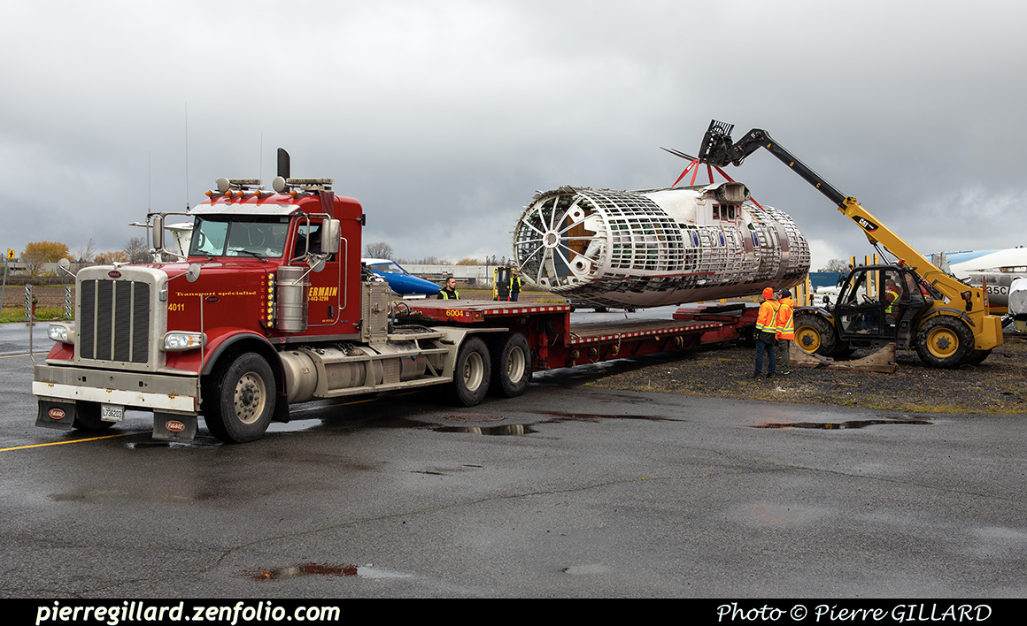 Le fuselage du Dash 8 ex-N831PH quitte l'ÉNA