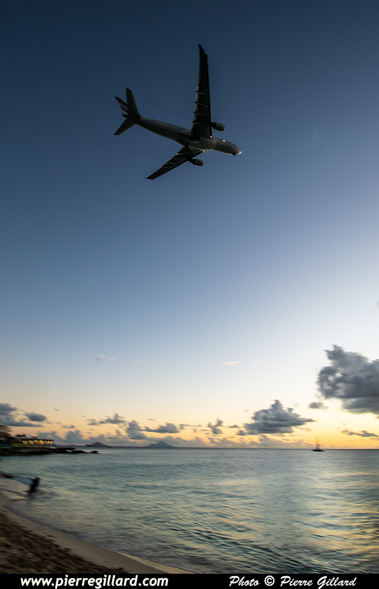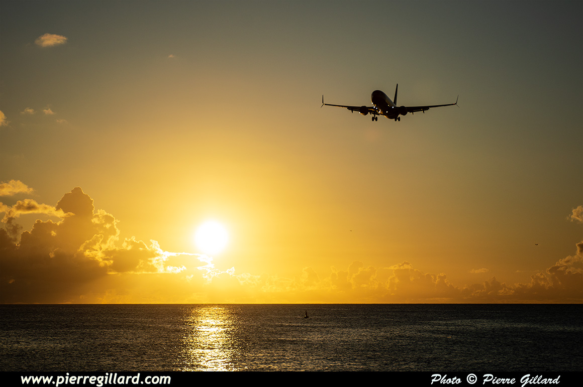 Je retournerai à Maho Beach à la tombée du jour pour prendre encore quelques vues d’avions au coucher du soleil, dont un Airbus A330 d’Air France et un autre de KLM arrivé un peu tardivement. Puis nous allons manger une bonne pizza au Driftwood accompagnée d’une bière "SXM" pour conclure cette journée !