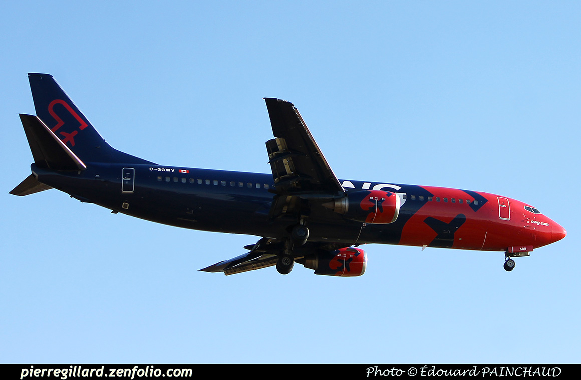 Cet après-midi, toute notre petite équipe de spotters "parasites de l’aéroport de Saint-Hubert" étions à poste afin de photographier l’arrivée de l’équipe de football des Argonauts de Toronto. En fait, ce n’était pas vraiment l’équipe en question qui nous intéressait, mais plutôt le Boeing 737-4Y0 C-GGWV (ex-OO-VEO pour mes amis belges) d’OWG, la filiale de Nolinor, qui la transportait ! Alors voici quelques photos de l’arrivée de l’avion au HUB FBO sous une magnifique lumière d’automne. |