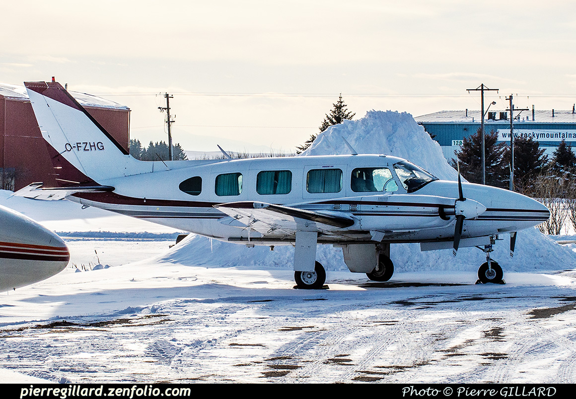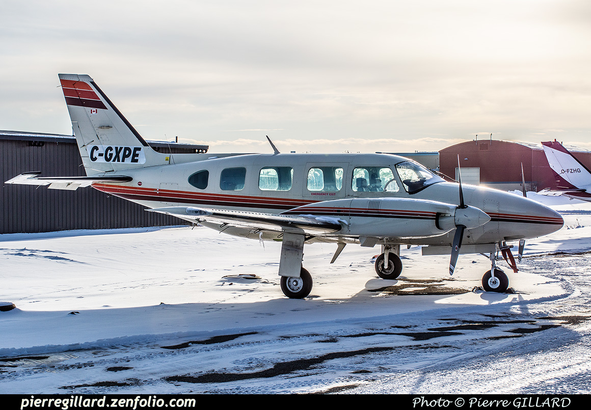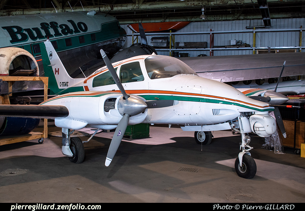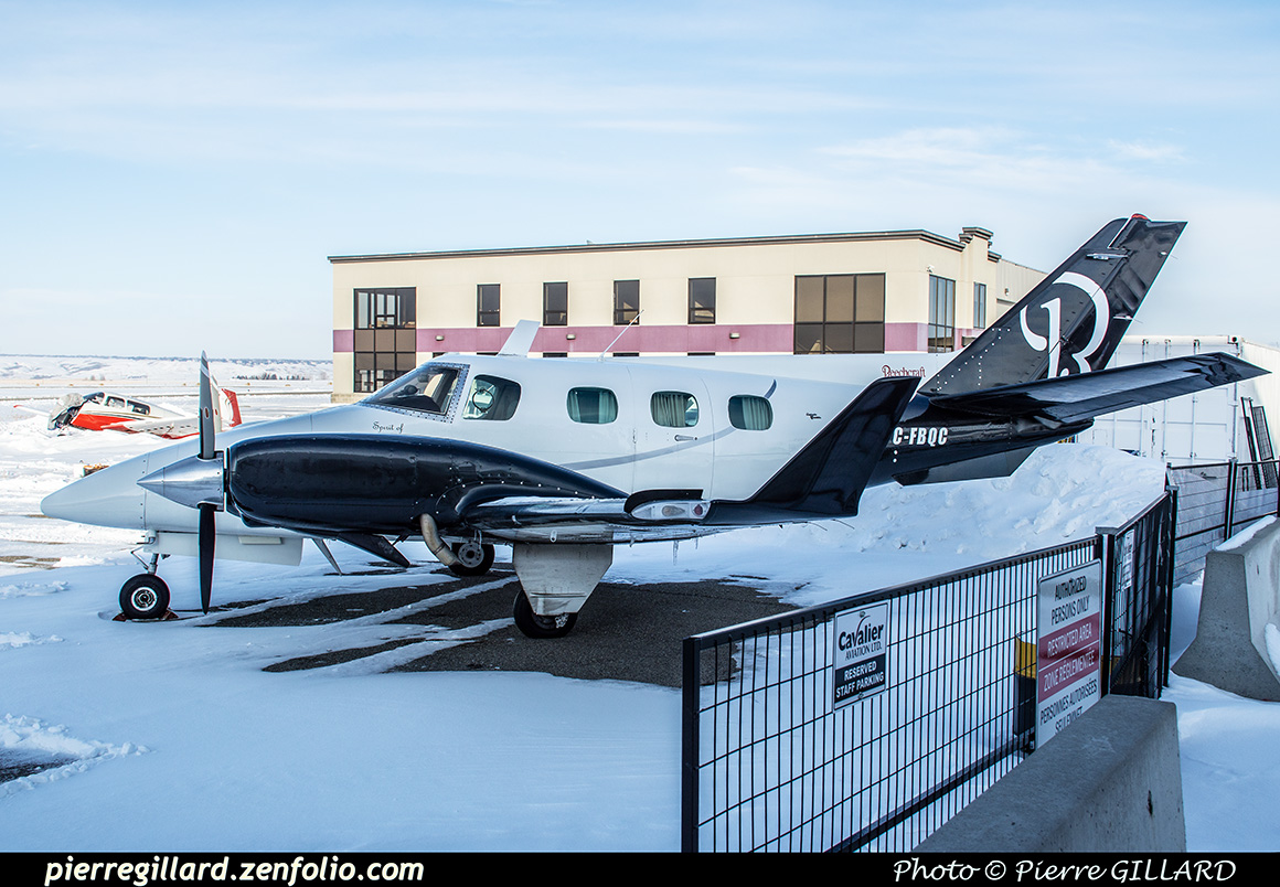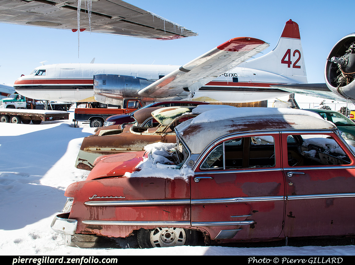 Après la visite des musées militaires, en route vers notre hôtel à Cochrane, nous nous devons de faire le tour de ce vaste aéroport. Étant l’hiver et sous la neige, il n’y a pas beaucoup d’activités et de mouvements. Nous prenons, donc, ça et là quelques photos des avions situés à proximité des clôtures. Parmi les "pièces plus rares", nous pouvons voir un Beechcraft Duke (C-FBQC), un Cessna 303 Crusader (N303AB), un fuselage d’Ercoupe (C-FMMS) ainsi qu’une réplique d’un Yak (C-FLGP) en construction amateur. |