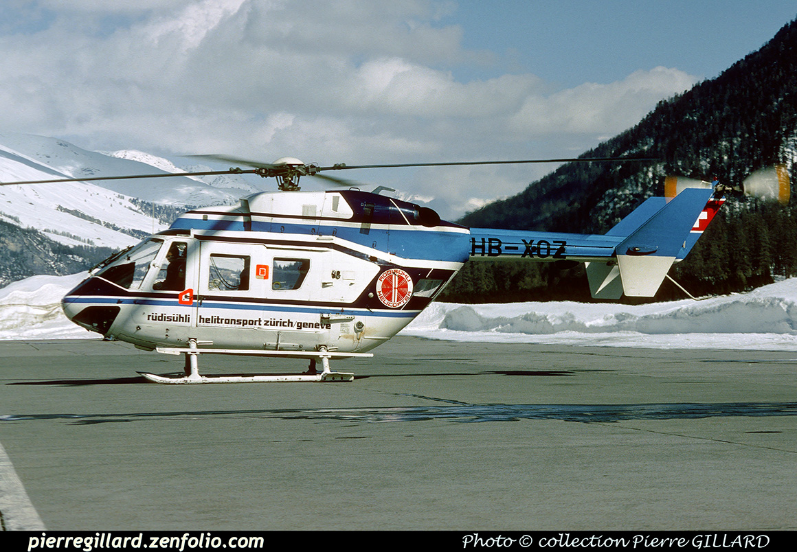 | HB-XOZ Eurocopter BK117A-1 MSN 7042, Rüdisühli Helikopter - Samedan - LSZS - 22-02-1991. |