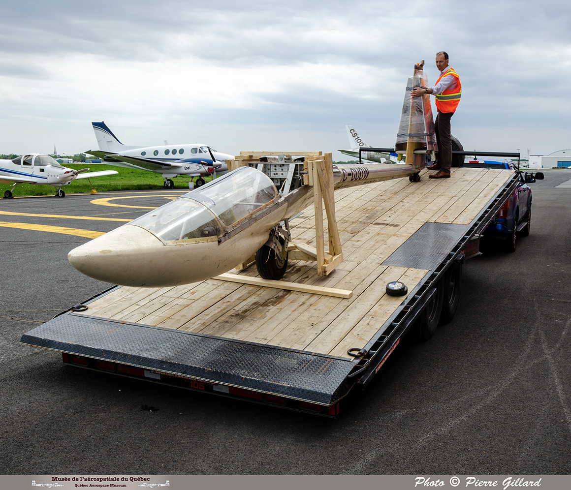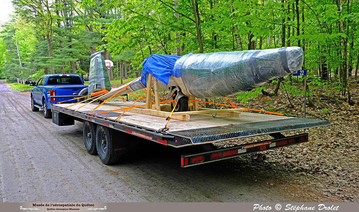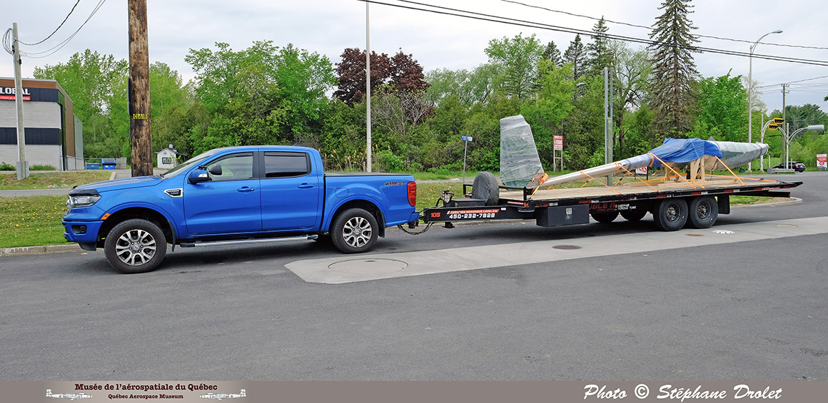 Hier avait lieu l’opération de transport du fuselage du planeur Mortensen 1PM C-GUOW du Musée de l’aérospatiale du Québec entre Vaudreuil-Dorion et l’aéroport de Saint-Hubert. Celle-ci faisait suite au transport des quatre éléments d’ailes qui s’était déroulé deux semaines plus tôt. |