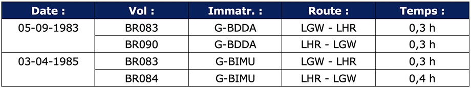| Vol Gatwick-Heathrow Airlink BR083 - G-BDDA Sikorsky S-61N MSN 61-746, British Airways Helicopters - Entre EGKK et EGLL - 05-09-1983. |