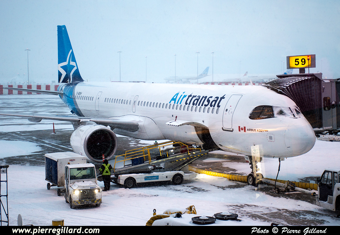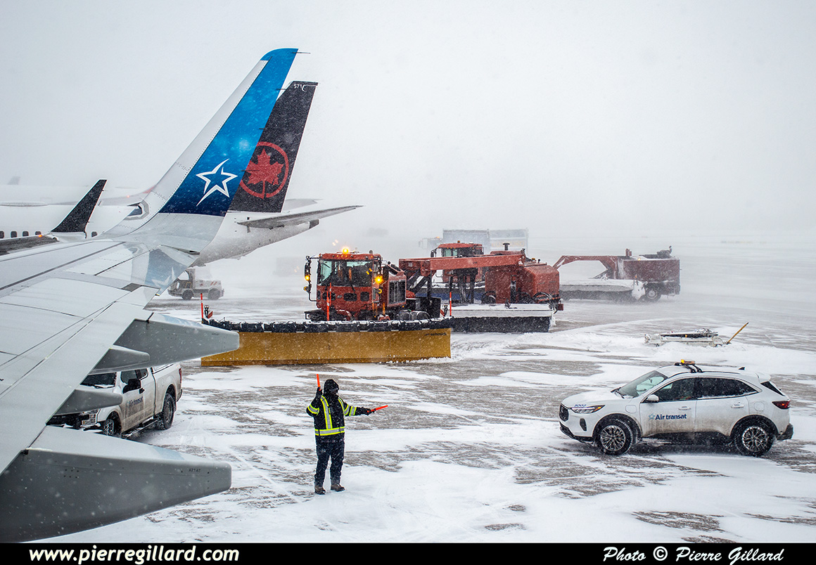 | L'aérogare de Dorval dans la tempête de neige - C-GOKH Airbus A321-271NX (A321neo) MSN 11932, Air Transat - Vol TS760 entre YUL et SAL - Montréal-Pierre-Elliott-Trudeau (Dorval), QC - CYUL - 26-01-2026. |