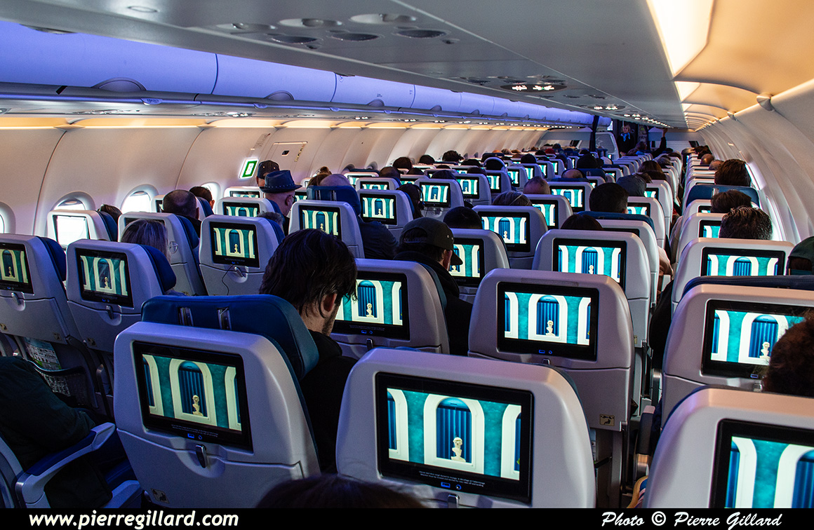 Puis nous passons les contrôles où je me fais confisquer un tube de dentifrice trop grand selon ce qui est permis, semblerait-il. Arrivés à la porte d’embarquement, je constate que notre Airbus A321neo (C-GOKH) est un des deux que j’avais photographié il y a moins de deux semaines au-dessus de Maho Beach à Saint-Martin. L’embarquement est quelque peu chaotique avec une attente dans la passerelle d’embarquement. Par le hublot, je note aussi l’Airbus A350 A6-EXM d’Emirates. En effet, cette compagnie a récemment changé de monture sur son vol entre Dubaï et Montréal. |