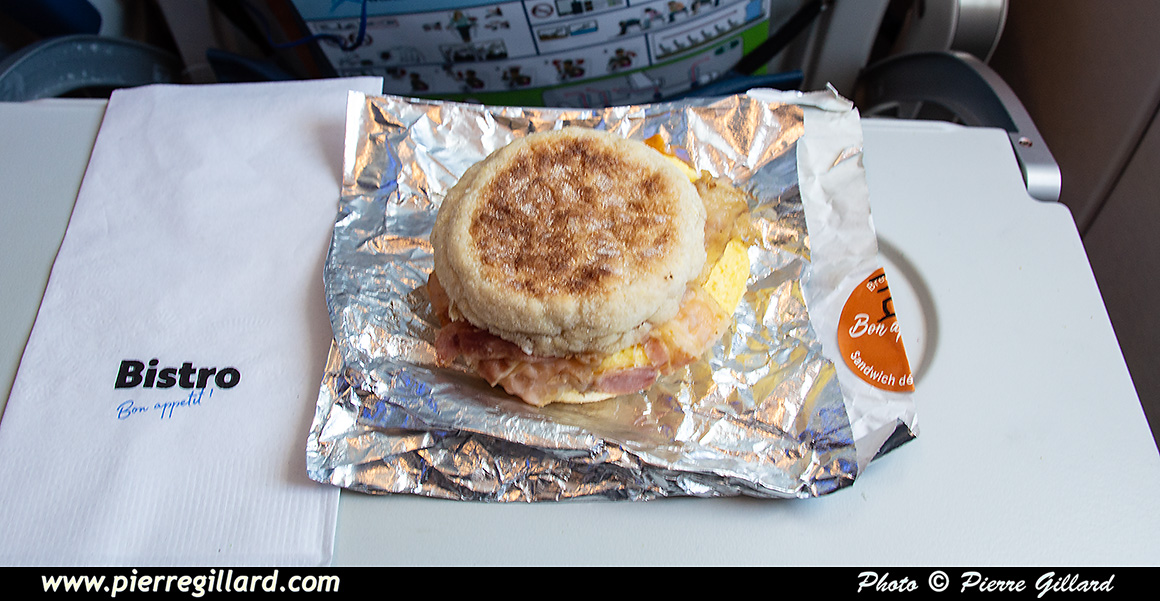 | Sandwich "petit déjeuner" du menu Bistro - C-GOKH Airbus A321-271NX (A321neo) MSN 11932, Air Transat - Vol TS760 entre YUL et SAL - 26-01-2026. |