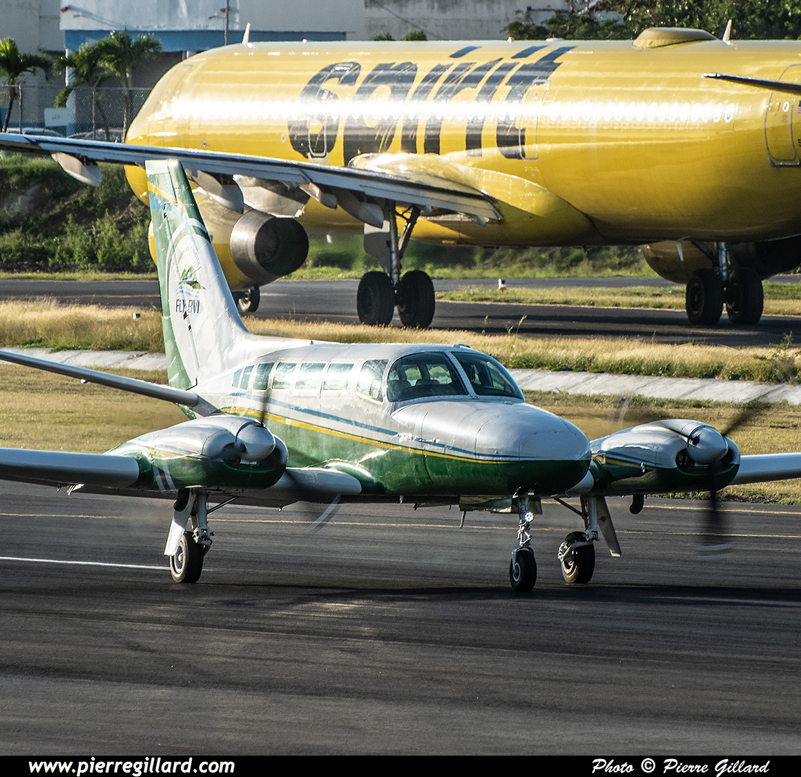 Pour moi, la "pièce maîtresse" de l’après-midi sera le Britten Norman BN-2A Mk. III Trislander VP-AJR d’Anguilla Air Services. En effet, seuls quelques exemplaires de cet avion bizarroïde volent encore. Par ailleurs, c’est seulement le second appareil de ce type, semblerait-il, que je vois dans ma vie ! Et comme cela faisait déjà deux fois qu’il était annoncé sur FlightAware et qu’il ne s’était pas pointé, je suis donc très heureux d’enfin le voir se poser à SXM. Je vous parlerai plus en détail de cet étrange trimoteur dans un prochain billet. |