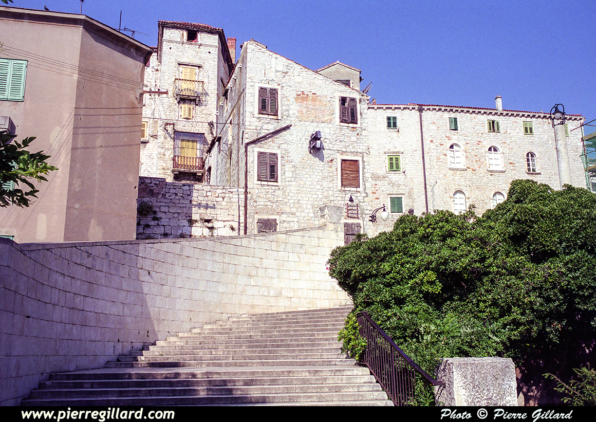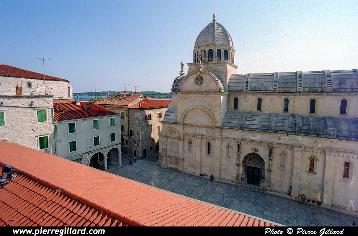 Vendredi 12 juillet 2002. En chemin entre Split et Zadar, notre ami Stipe nous propose une halte à Šibenik. Une fois sur place, nous visitons rapidement le quartier de la cathédrale Saint-Jacques (Katedrala sv. Jakova) avant de monter à la citadelle Saint-Michel (Tvrđava sv. Mihovila). Puis nous repartons pour Zadar. |