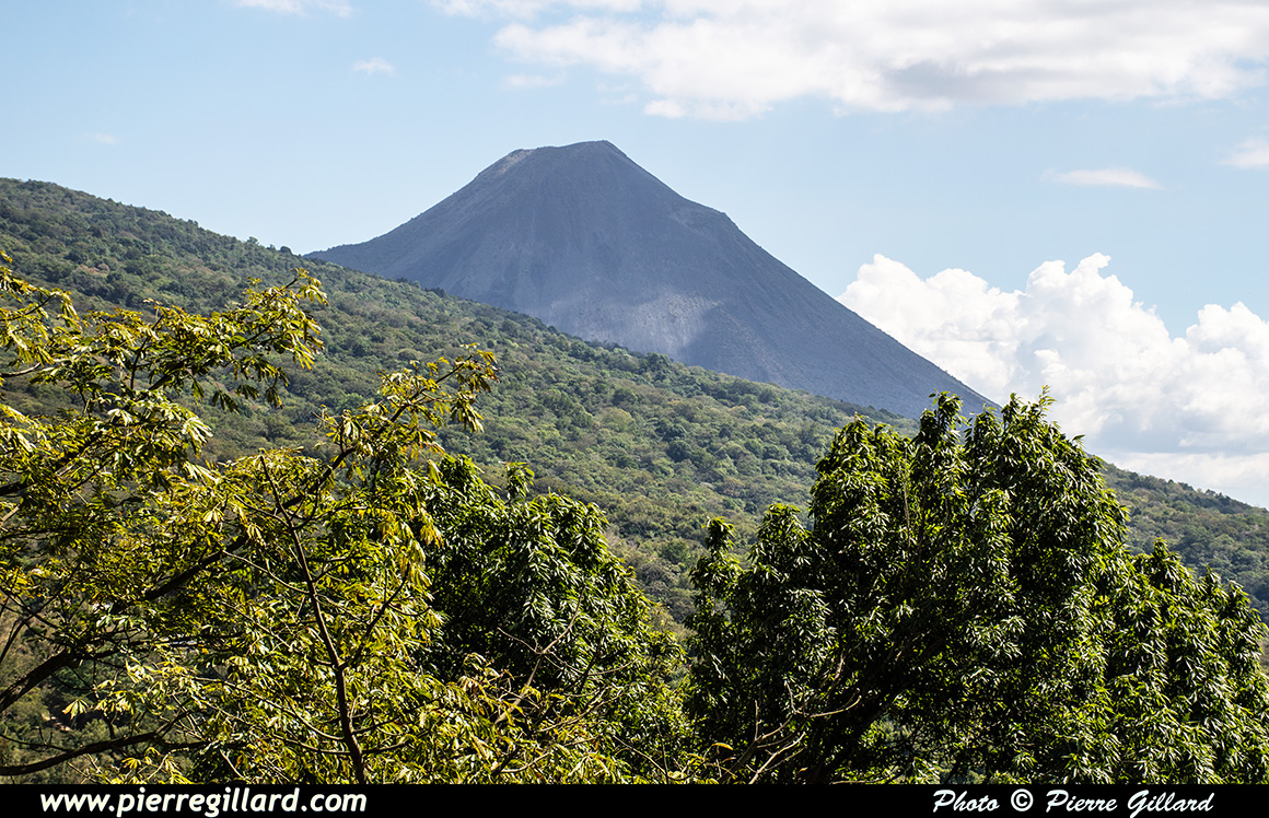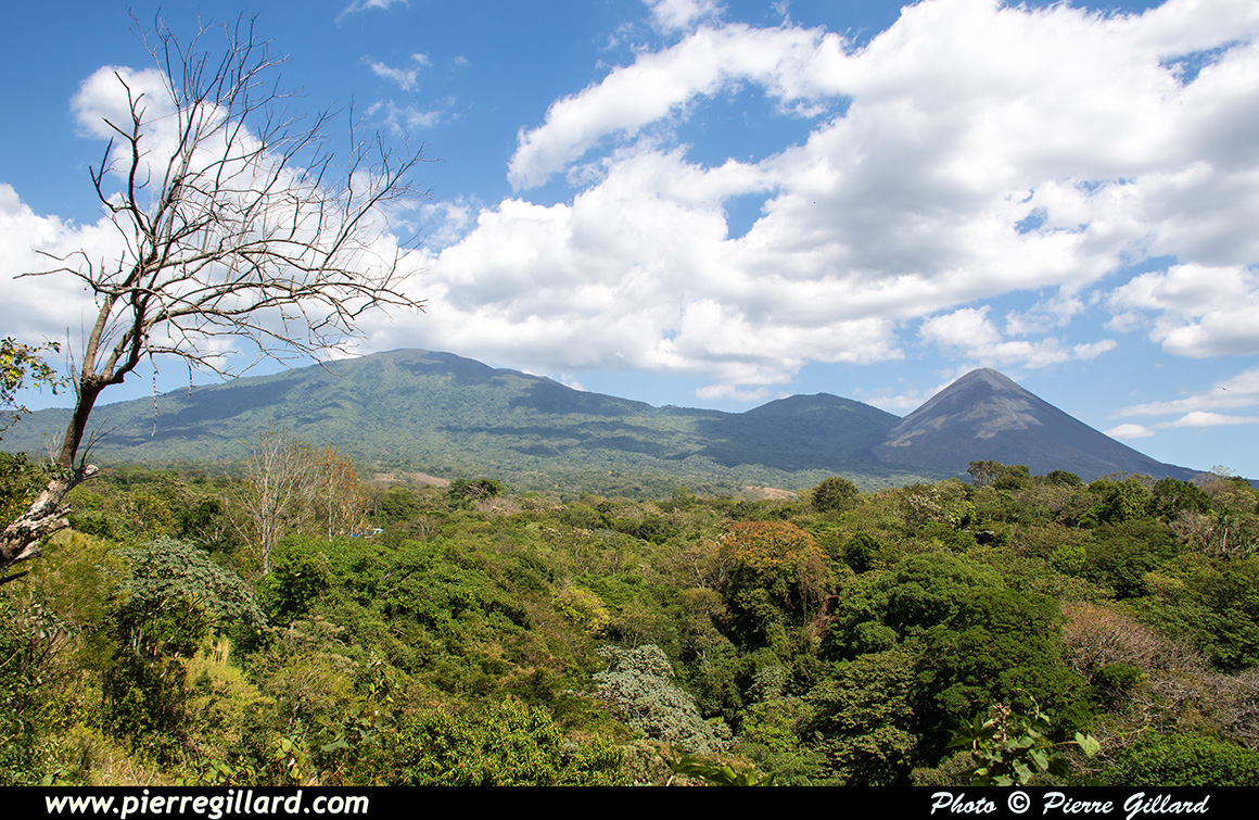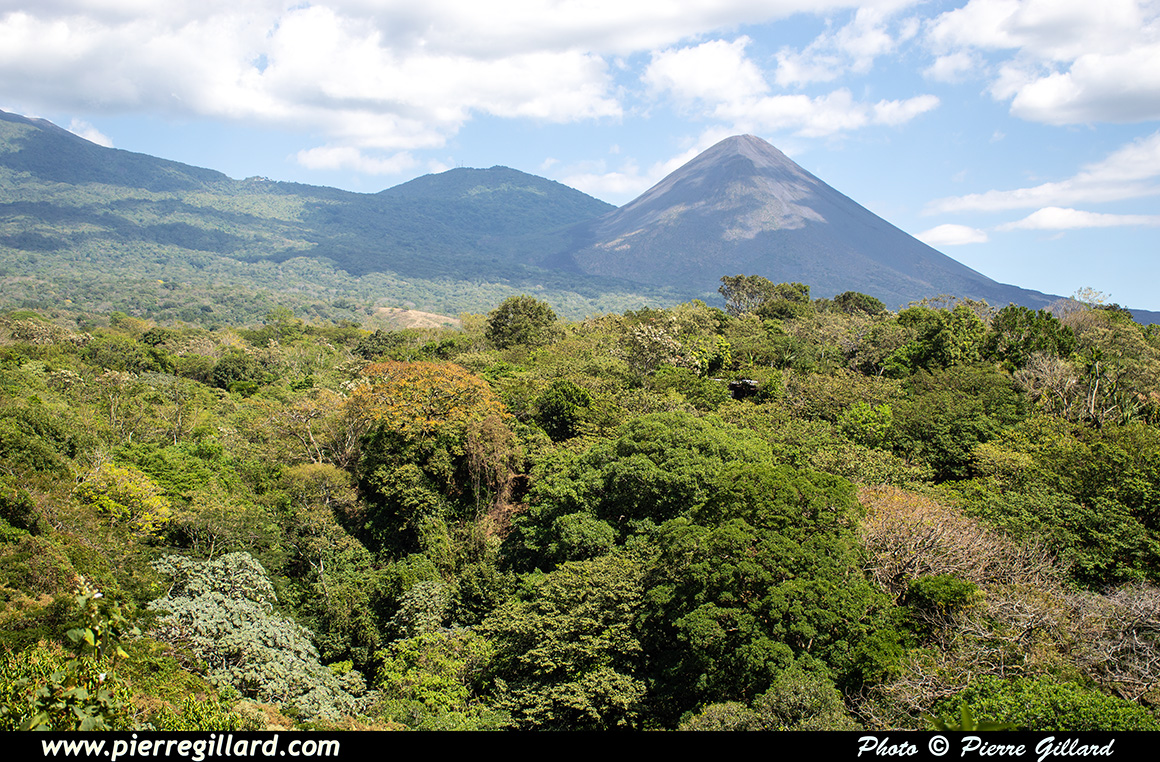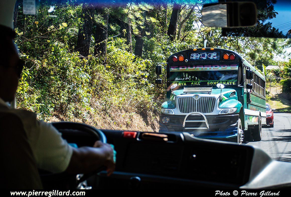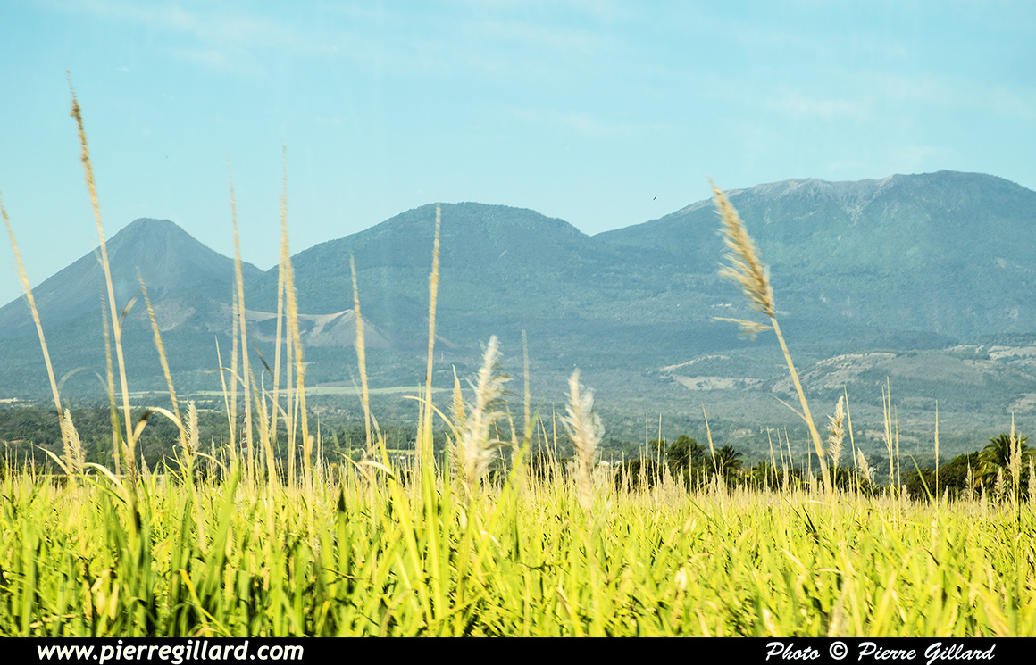 Pour le retour, nous empruntons la route CA-12S qui passe par un col à plus de 1.800 mètres d’altitude et le village de Los Naranjos d’où on peut admirer les volcans Santa Ana et Izalco. Heureusement, Gabriel, le chauffeur de l’autobus, et Miguel, le guide, sont bien conciliants et effectuent plusieurs arrêts me permettant de prendre rapidement quelques vues de ces magnifiques paysages volcaniques. |