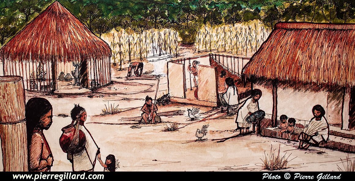 | Représentation hypothétique du Complexe 1 représentant la vie quotidienne à Joya de Cerén - Parc archéologique Joya de Cerén - 30-01-2026. |