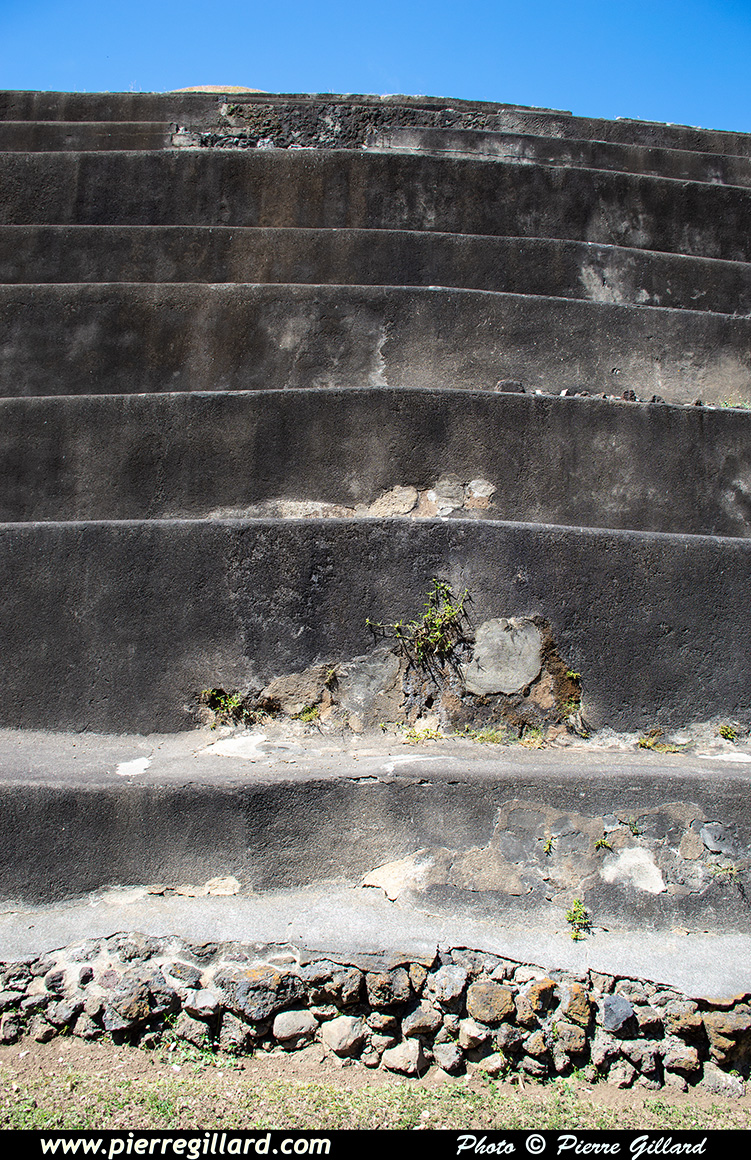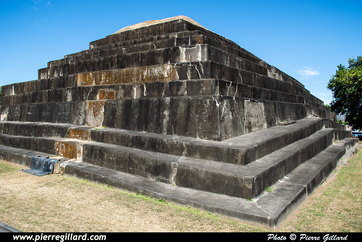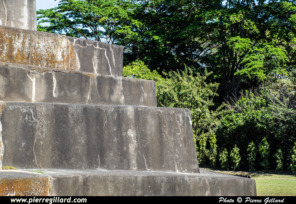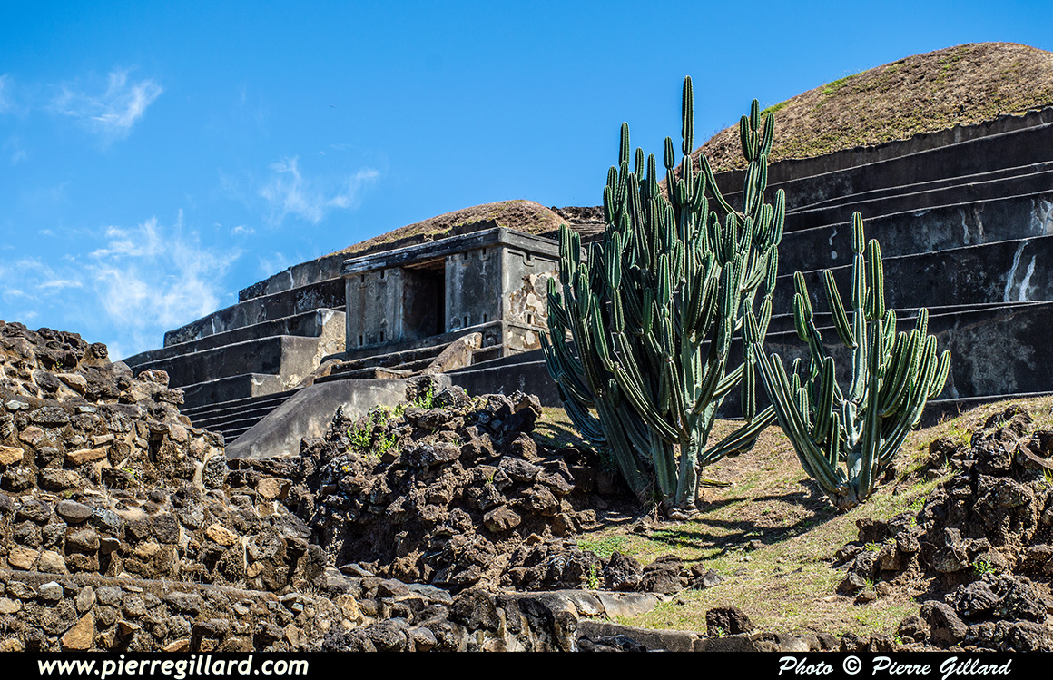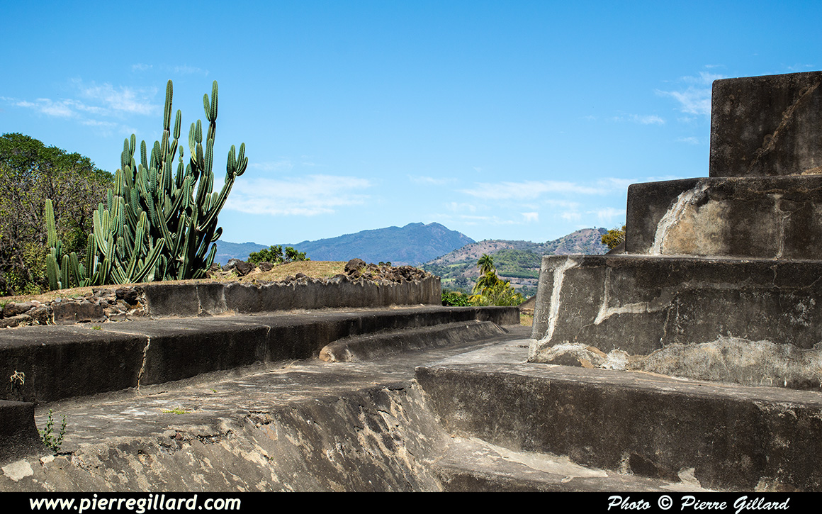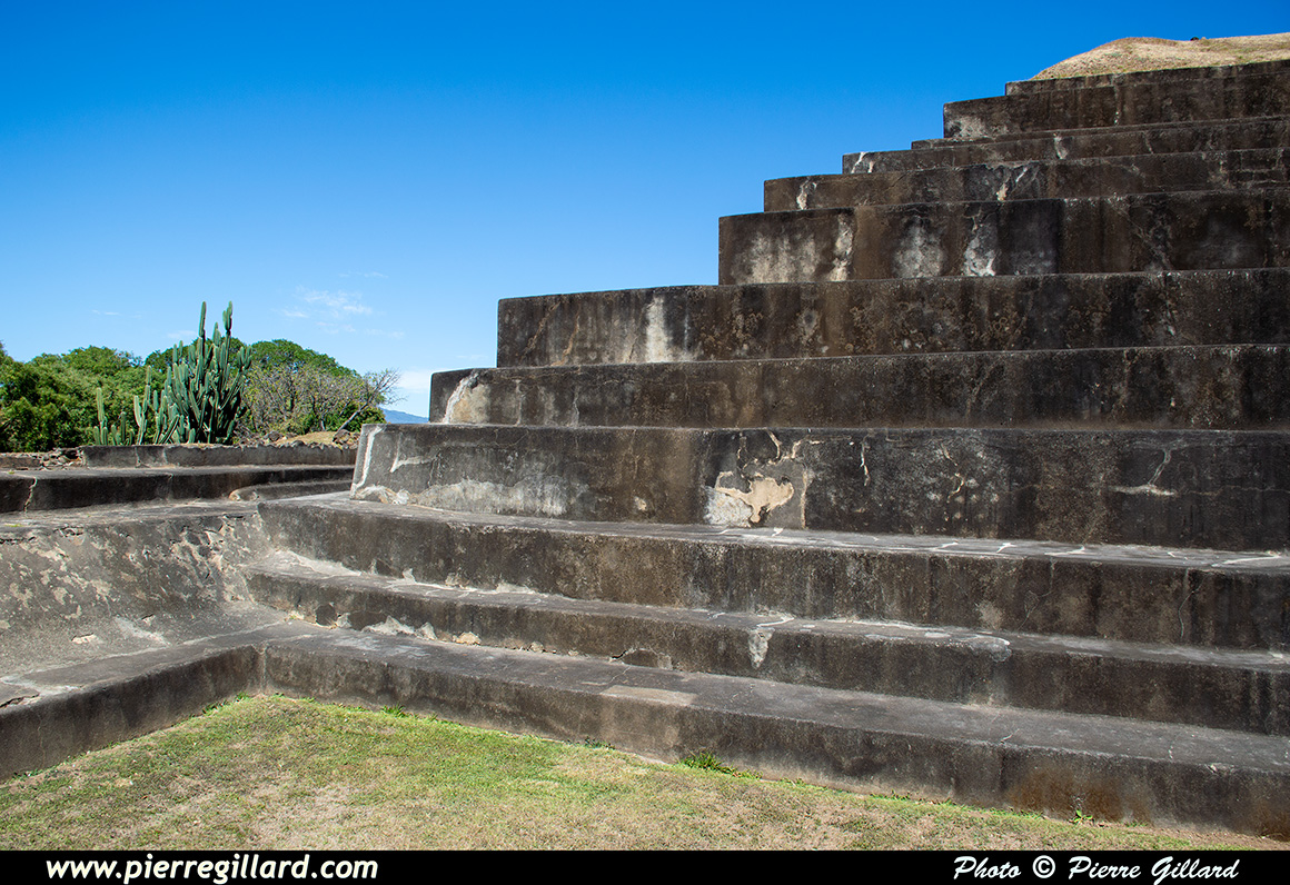 | La structure de la pyramide est rectangulaire et dispose d'un premier temple à l'étage intermédiare ainsi qu'un second au sommet - Parque Arqueológico Tazumal - 30-01-2026. |