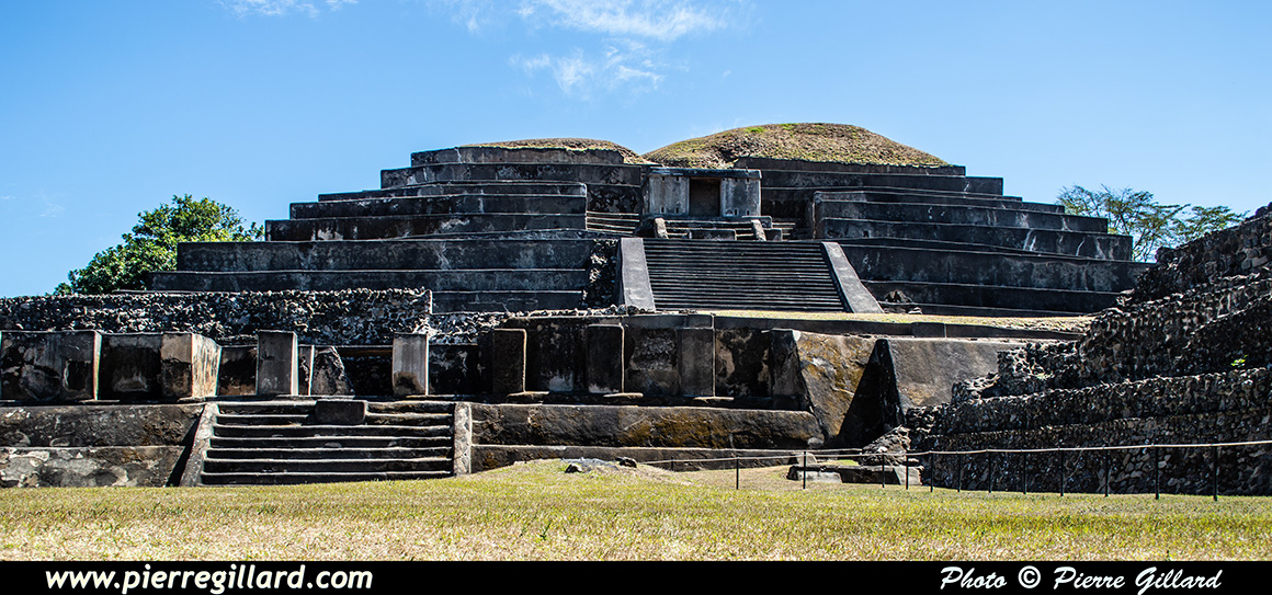 | Vue d'ensemble de la pyramide B1 du site archéologique El Tazumal - Chalchuapa - 30-01-2026. |