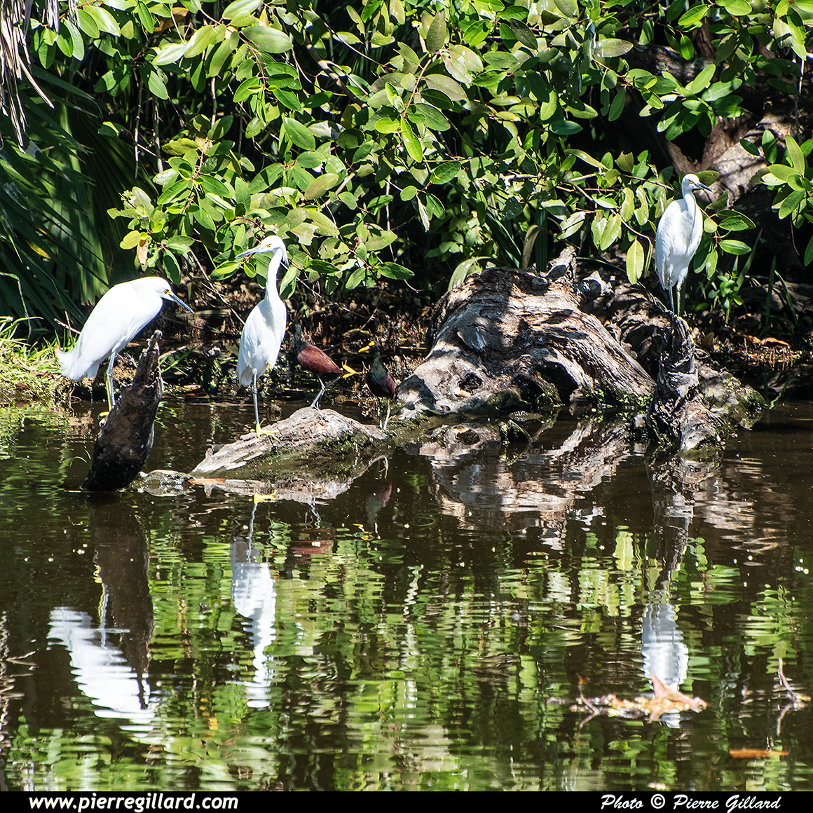 À noter que derrière notre bloc de logements (le bloc No. 3 !), nous avions un vaste étang où on pouvait admirer différentes sortes d’oiseaux. À certains endroits, on n’était pas loin d’un décor de mangrove, ce qui a donné de beaux arrière-plans à certaines vues. J’ai aussi pris plusieurs photos le long d’un petit cours d’eau aboutissant sur la plage où bon nombre d’oiseaux venaient "prendre leur bain", se désaltérer ou même se nourrir. Là, j’ai même vu deux urubus se délecter d’un cadavre d’iguane … |