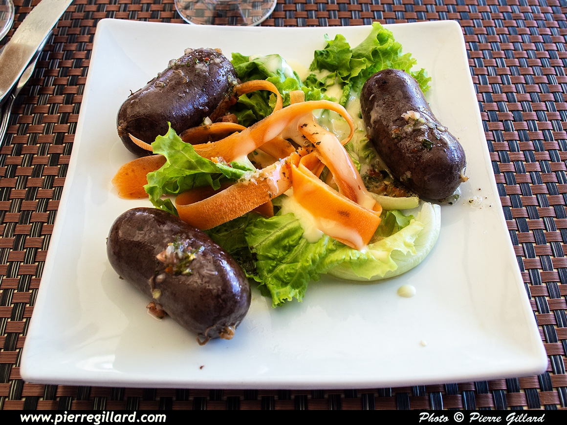 | Plat de boudin noir créole d'un restaurant de la marina de la Pointe du Bout - Les Trois-Îlets - 23-02-2026. |