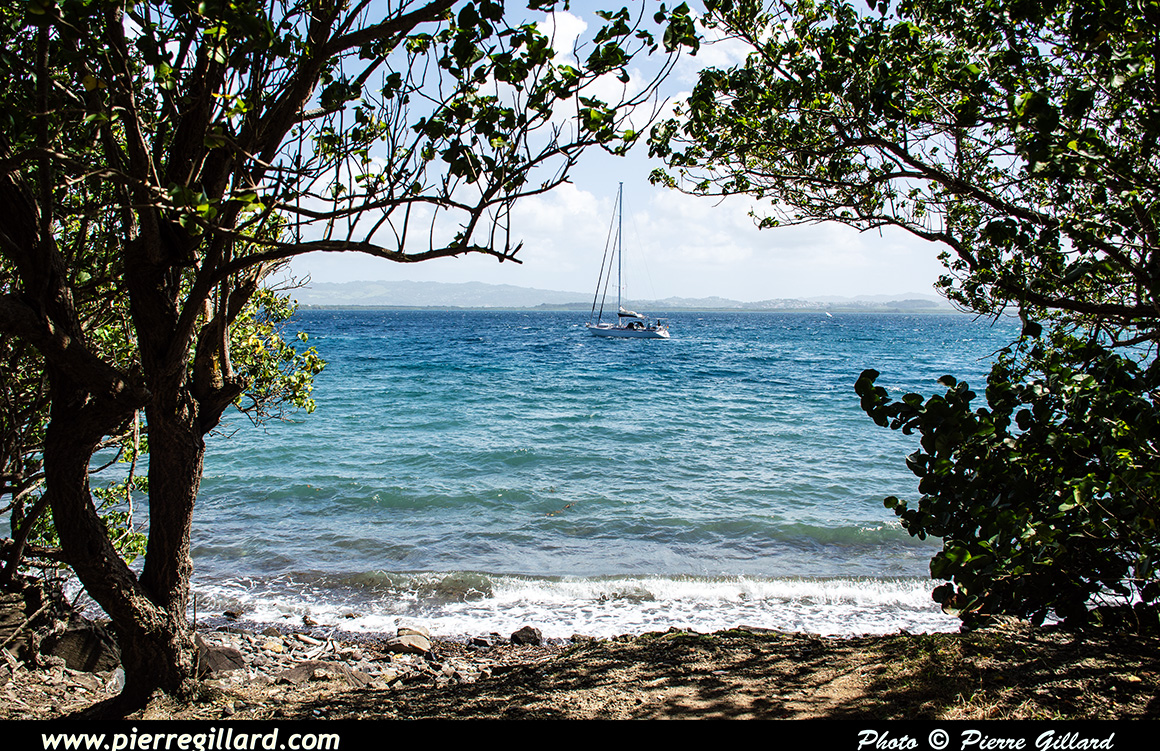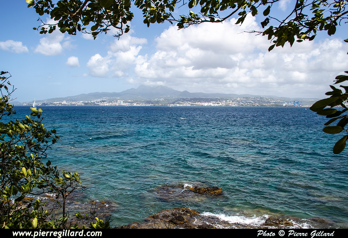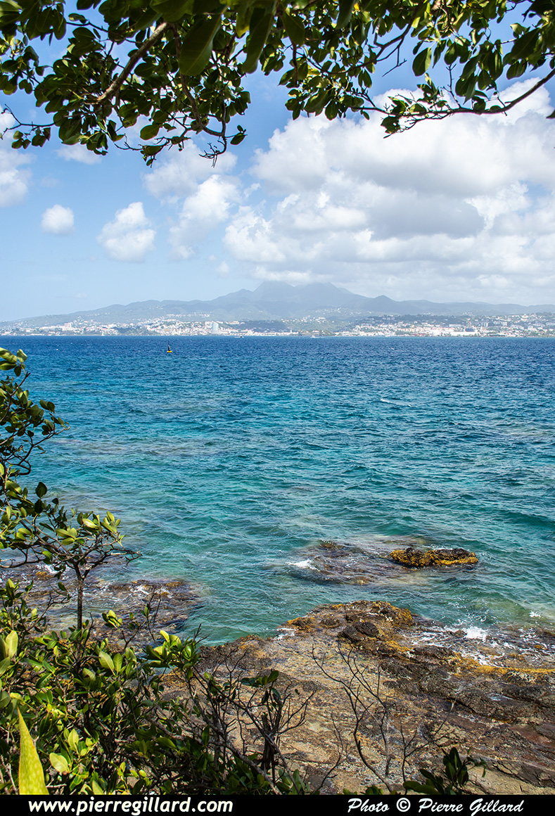 Une fois au "bout du Bout", on a une très belle vue sur la Baie de Fort-de-France ainsi que sur la capitale de la Martinique. À l’exception d’un pêcheur caché dans des rochers un peu plus loin, je profite du fait que je suis seul pour admirer tranquillement le magnifique panorama qui s’offre à moi. |