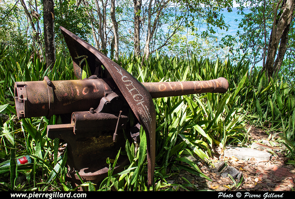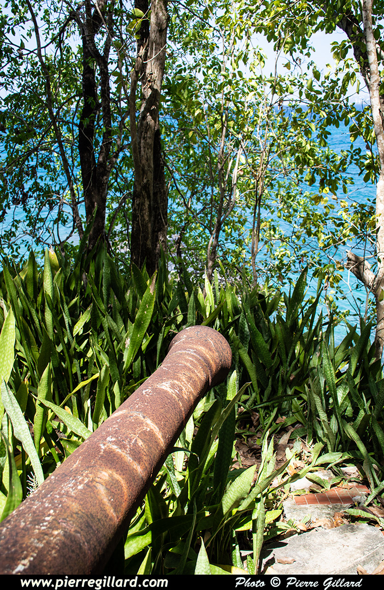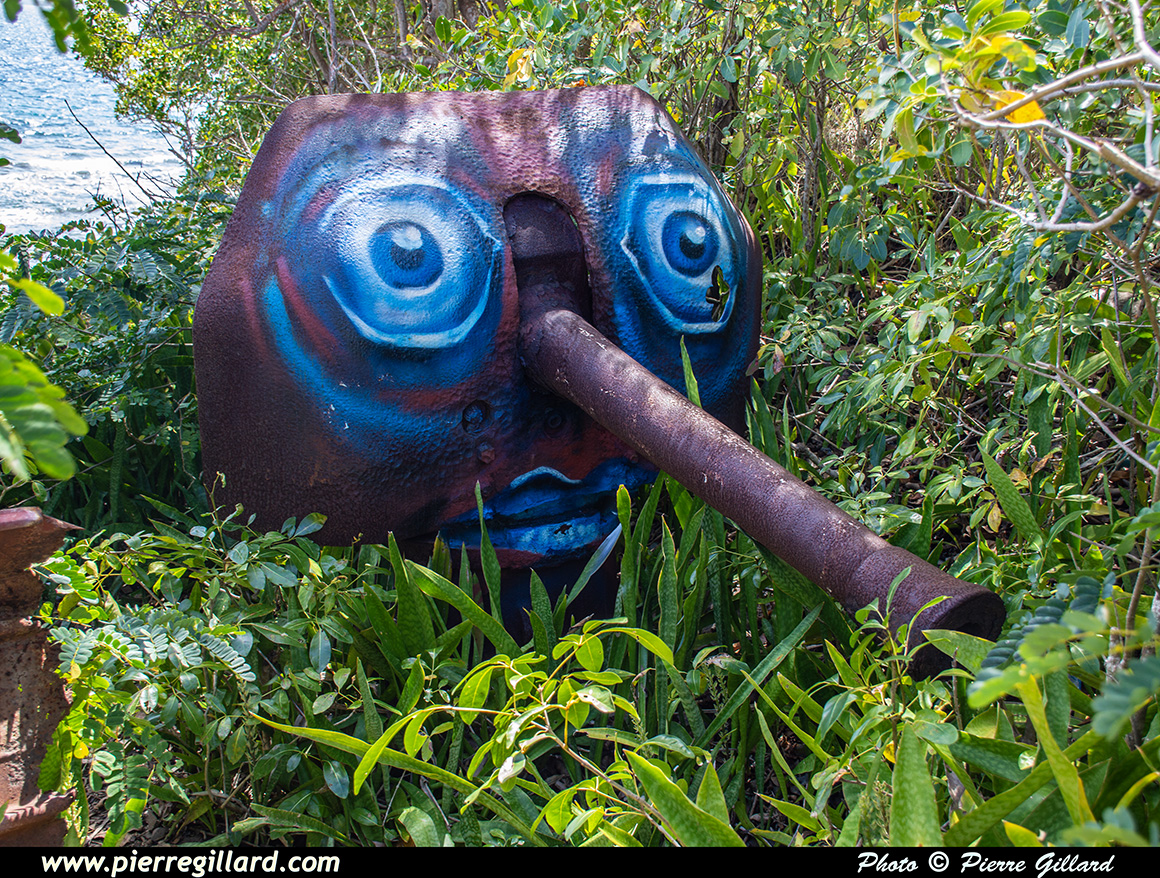 Un moment donné, on a l’impression d’être dans la peau d’Indiana Jones, car on découvre un ancien fort militaire datant du XVIIe siècle entièrement noyé dans la végétation comme si on était dans la jungle profonde. Remis au goût du jour en 1940, son rôle était alors de protéger l’entrée de la Baie de Fort-de-France. En en faisant le tour, on découvre aussi deux anciens canons rouillés dont l’un a reçu une décoration assez particulière et humoristique ! |