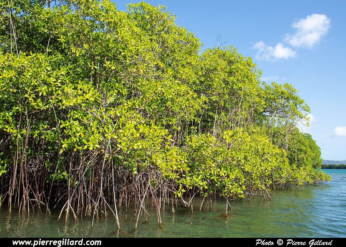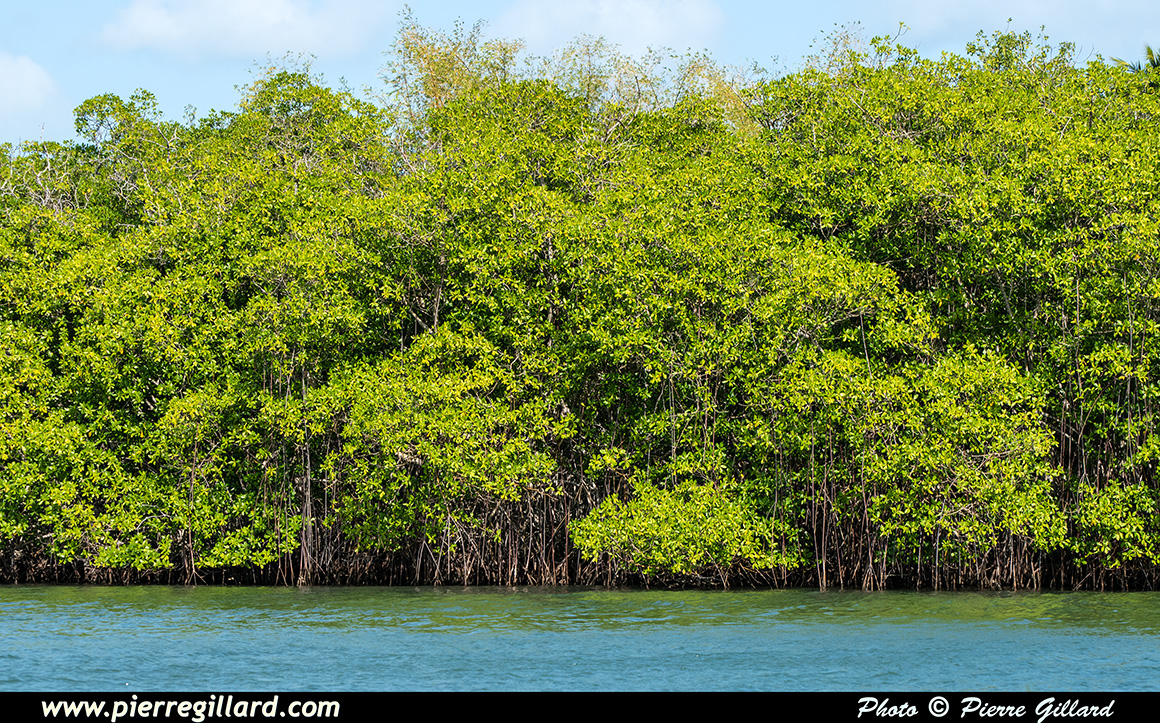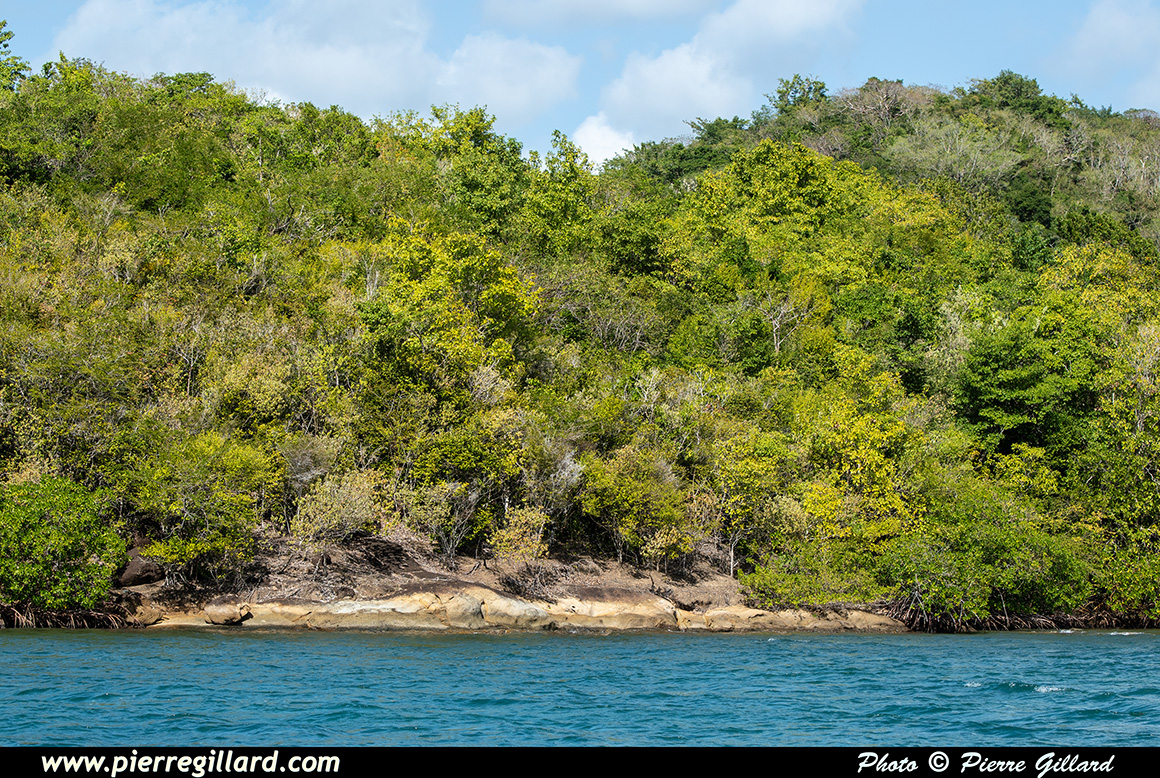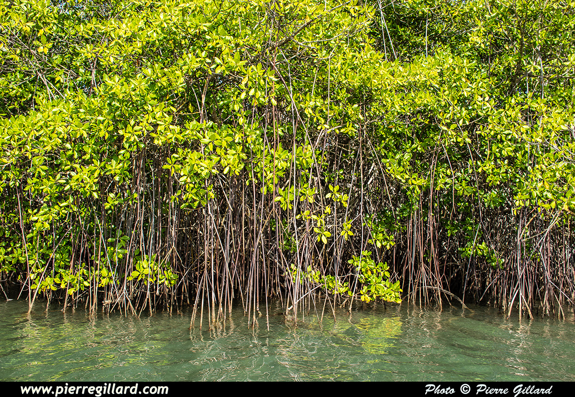 Nous sommes un groupe de 12 personnes, dont deux enfants, et notre guide n’est pas avare en commentaires et en explications. Nous passons à côté du Cayé à Vache, île nommée ainsi en souvenir des lamantins aujourd’hui disparus de l’île, ainsi qu’à côté du Petit-Îlet avant de nous enfoncer dans la mangrove proprement dite. |
