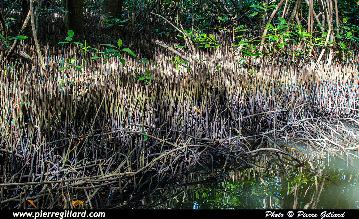 Pour la première fois lors d’une visite d’une mangrove, nous avons droit à de très nombreuses explications détaillées nous aidant à mieux comprendre la formation et l’utilité d’un tel écosystème. Le guide nous explique également les différentes sortes d’oiseaux et de poissons que l’on peut trouver dans la mangrove ainsi qu’en Martinique. Bref, le tout est fort instructif ! |