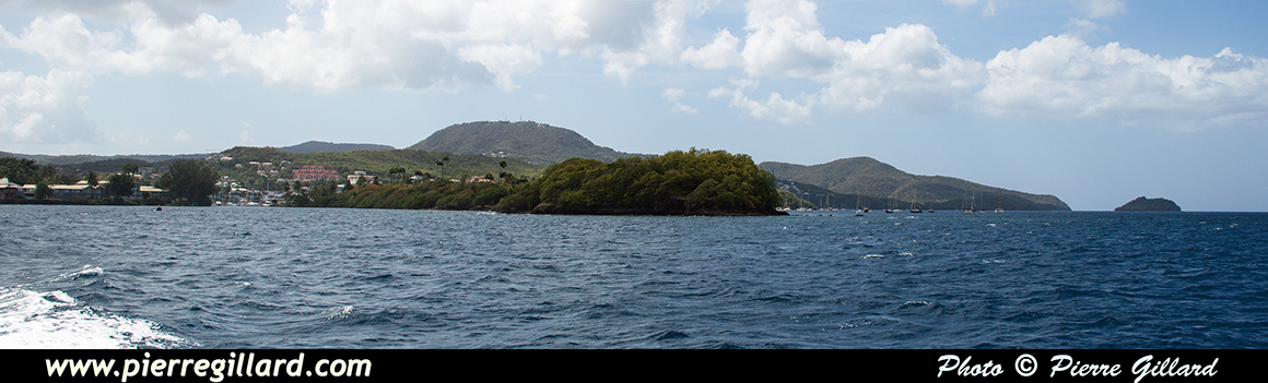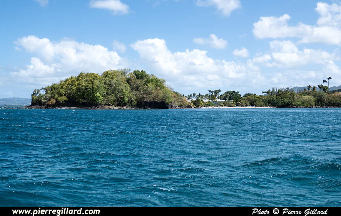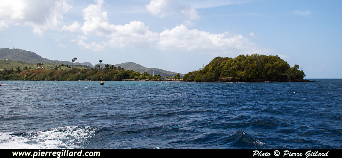 À vitesse réduite, nous contournons la Point de Bout et passons successivement devant l’Anse Mitan où se trouve notre hôtel et l’Anse à l’Âne. Nous poursuivons en longeant l’Îlet Ramier qui a servi de fort, d’hôpital militaire ainsi que de lieu de villégiature pour les militaires postés en Martinique. Actuellement, l’îlet est abandonné et il ne subsiste qu’un ponton en ruines ainsi que les restes du fort. |