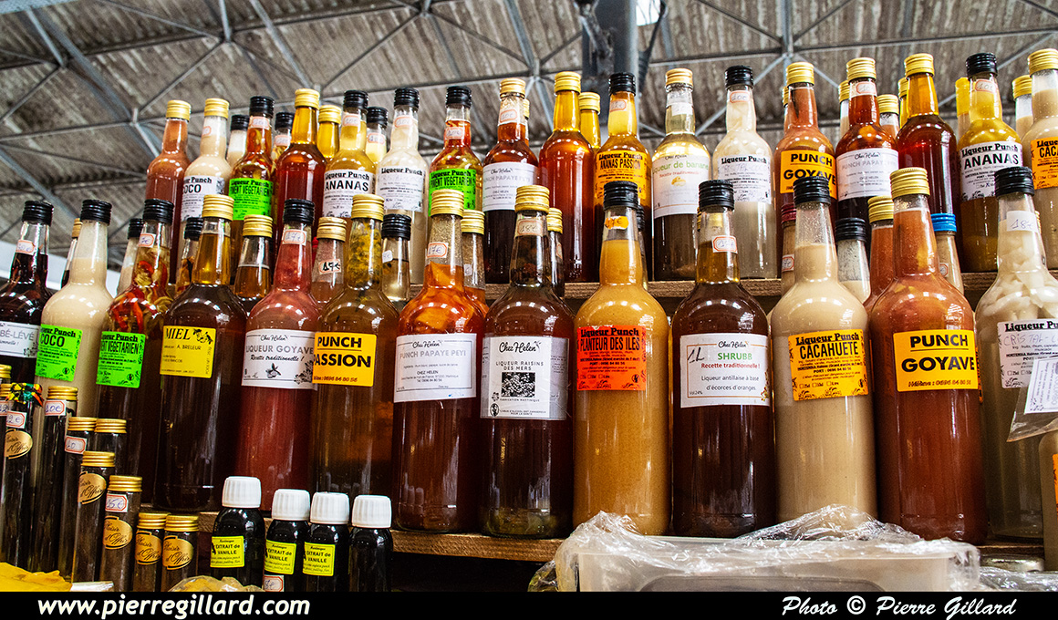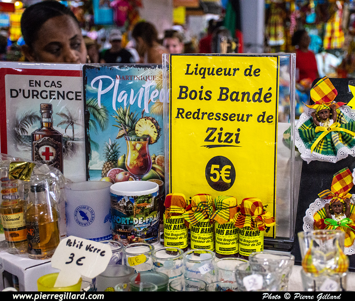 Puis nous remontons la rue Isambert jusqu’au Grand Marché couvert où c’est au tour de Louise de "prendre son pied". Nous déambulons parmi les différents étals dont la moitié propose des produits du terroir tandis que l’autre moitié est plus destinés aux souvenirs de la Martinique. Nous notons, particulièrement, le "Bwa Bandé" ! |