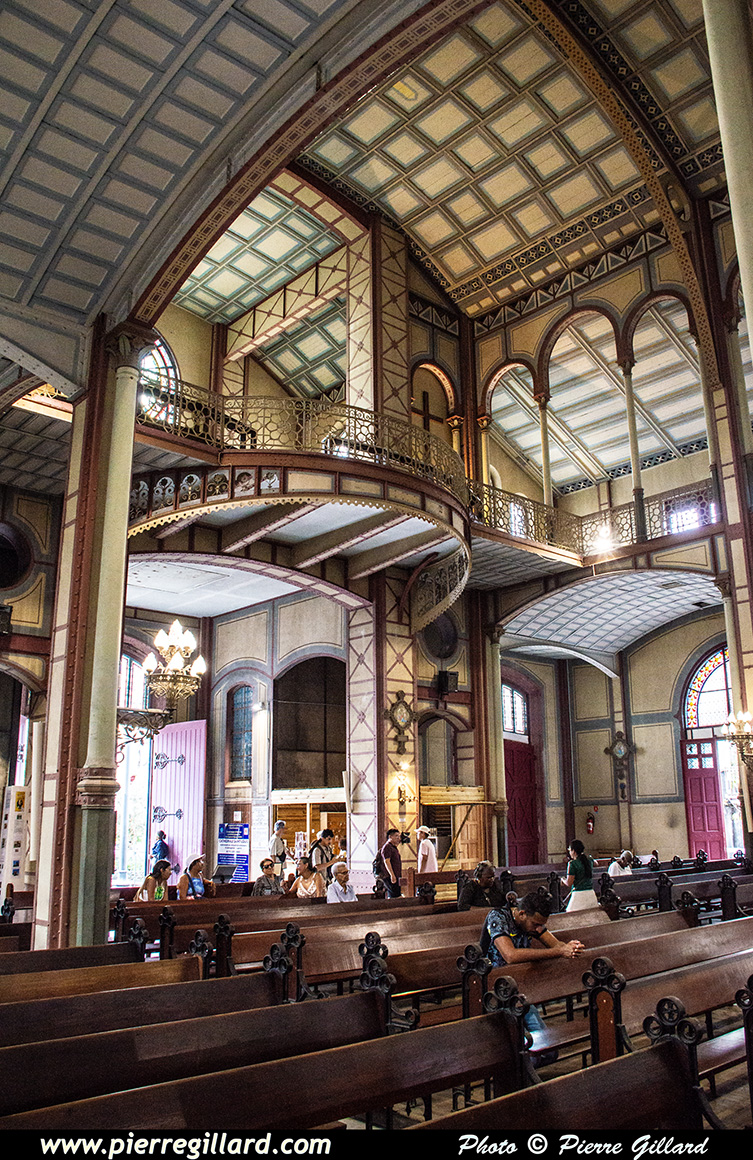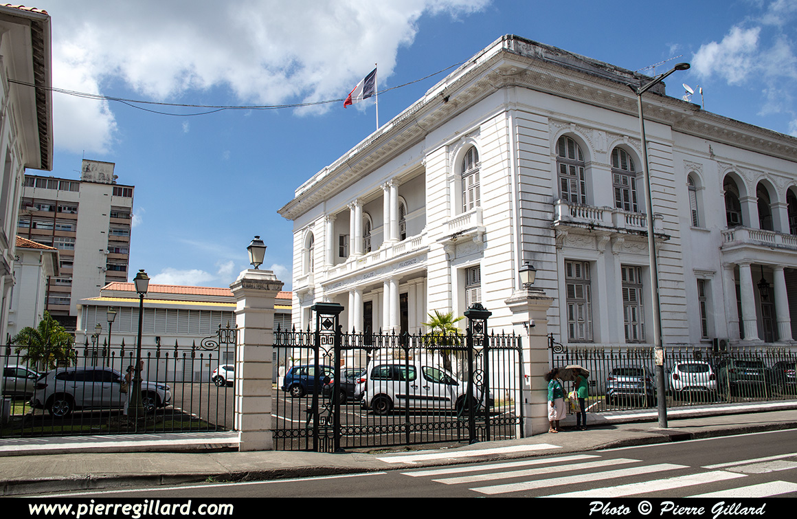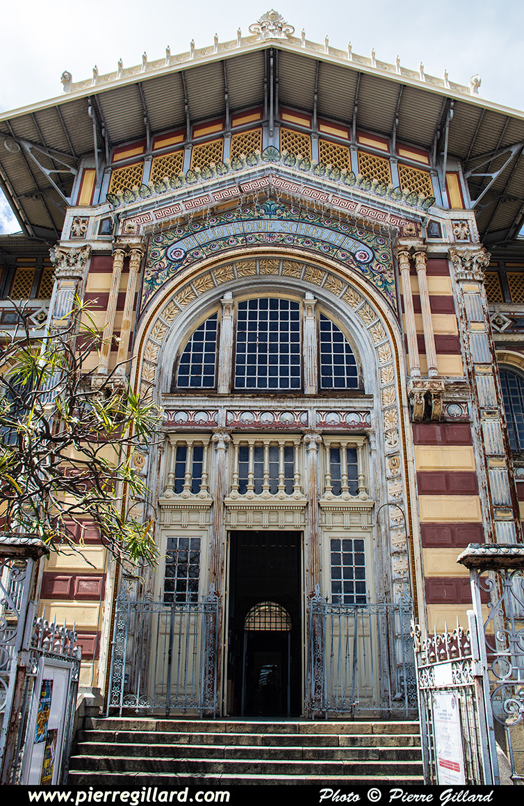 Un moment donné, les cloches se mettent à sonner alors que de nombreux fidèles commencent à affluer. Un office funéraire débute et c’est à ce moment que Louise et moi reprenons notre visite de la ville. Quelques photos de l’extérieur de cette cathédrale du XIXe siècle sont prises, puis nous rejoignons la rue de la Liberté que nous remontons jusqu’à la Bibliothèque Schœlcher qui date elle aussi du XIXe siècle. |