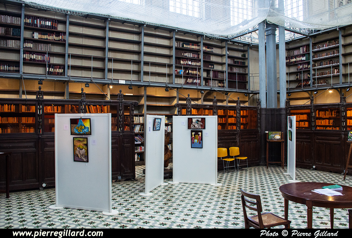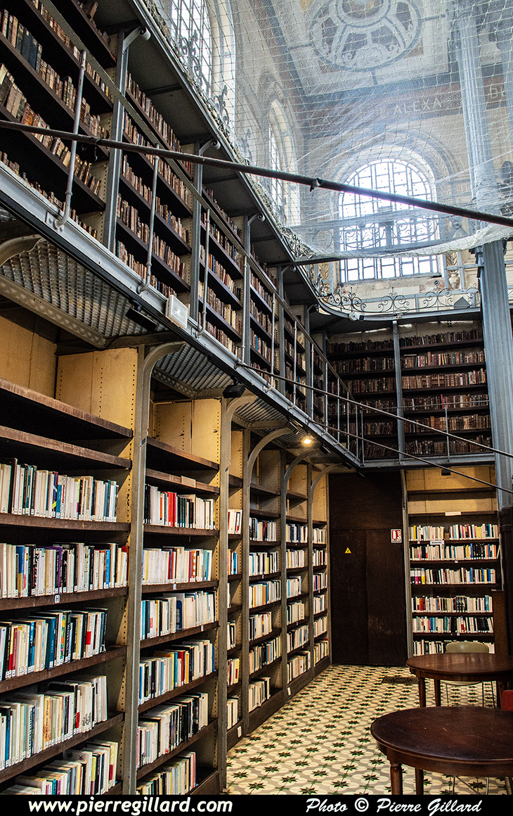 Il s’agit d’un magnifique édifice dont l’accès est public. Dans le bâtiment principal se déroule une exposition de peinture. Sur les murs latéraux, les livres sont soigneusement rangés sur deux étages. Malheureusement, il n’est pas possible de photographier la voute et le dôme vitré, car un filet de protection a été installé. |
