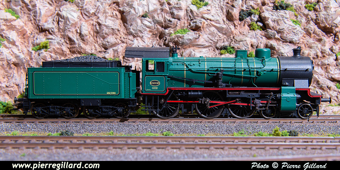 | Note : Malheureusement, du jeu dans les roues de la locomotive fait qu'un court-circuit peut se produire entre celles-ci et les plots du conducteur central dans les aiguillages élancés de la voie C. Ce problème ne pouvant être résolu de façon simple et économique, cette locomotive ne peut pas circuler sur notre réseau. Nous la conservons, donc, comme pièce de collection. |