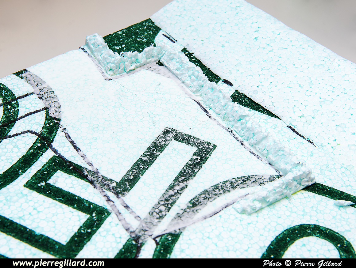 Je débute, donc, en réalisant une structure grossière faite d’éléments de styromousse donnant une première idée du relief du module. |
