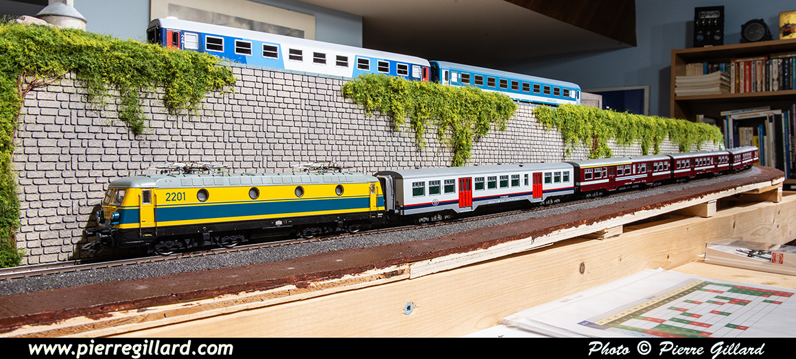 | Convoi de voitures de voyageurs S.N.C.B/Railtours L.S. Models et Märklin tracté par une locomotive BR.182 DB "Coca-Cola" de Märklin - Longueuil, QC - 08-04-2025. |