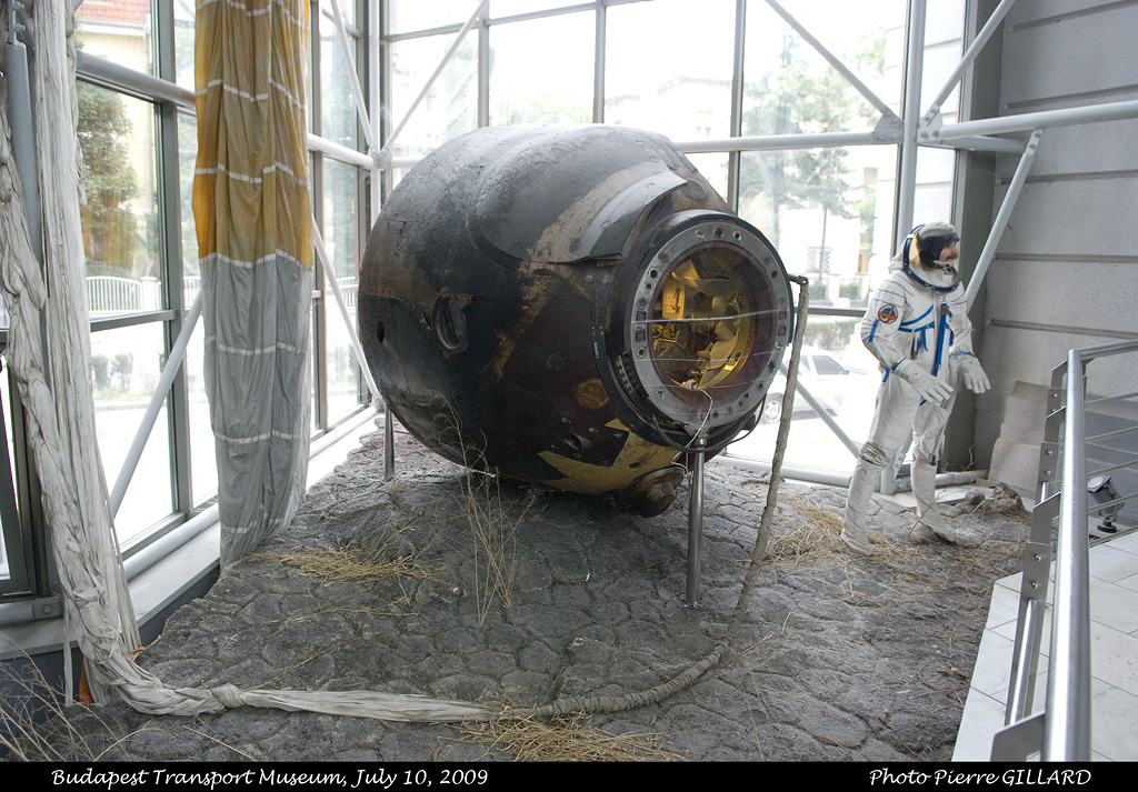 | Capsule spatiale Soyouz et représentation du cosmonaute Bertalan Farkas - Közlekedési Múzeum - Budapest - 10-07-2009. |