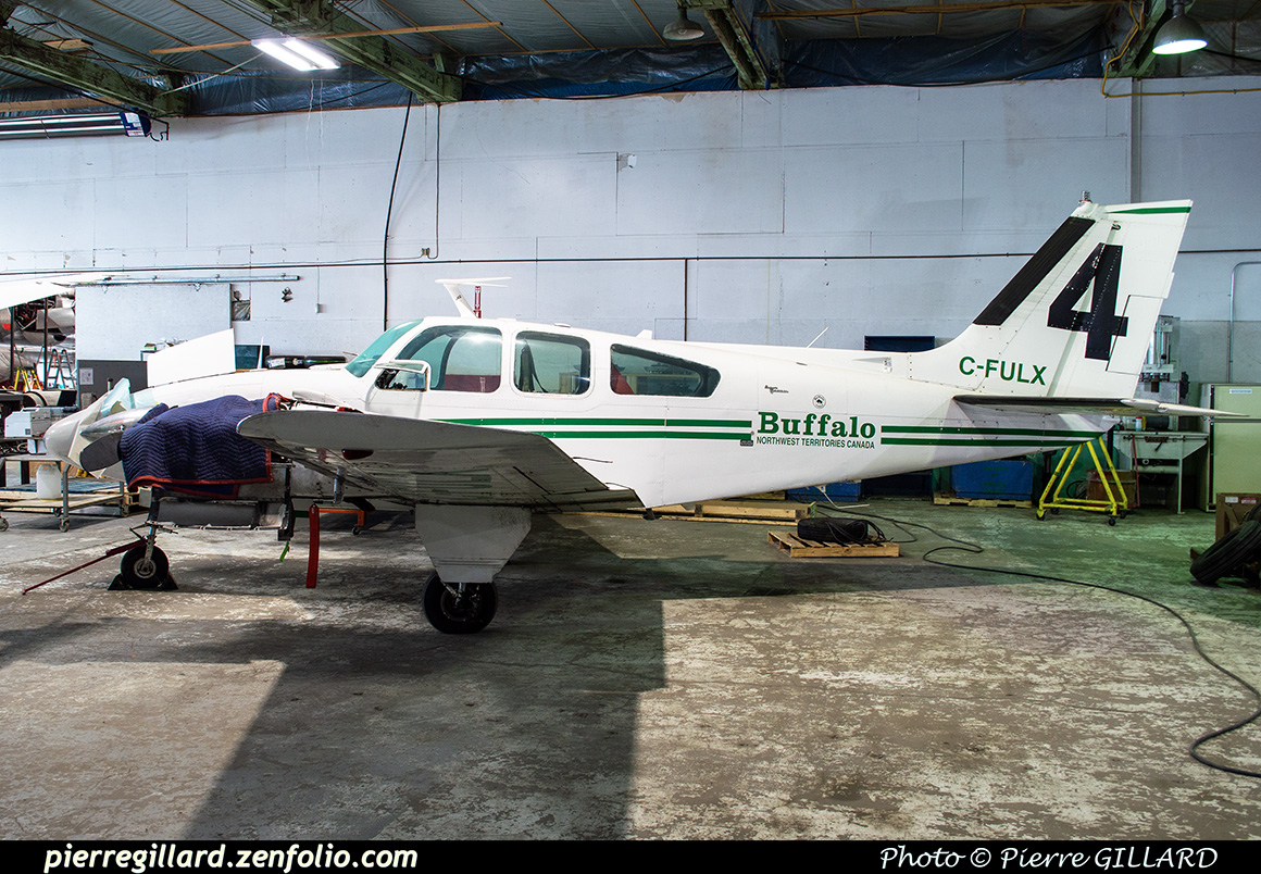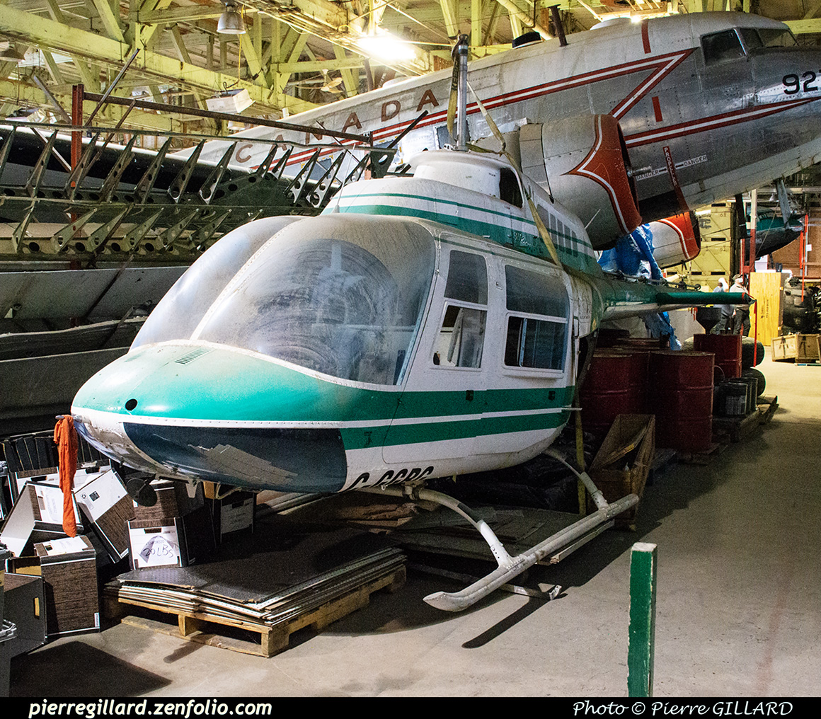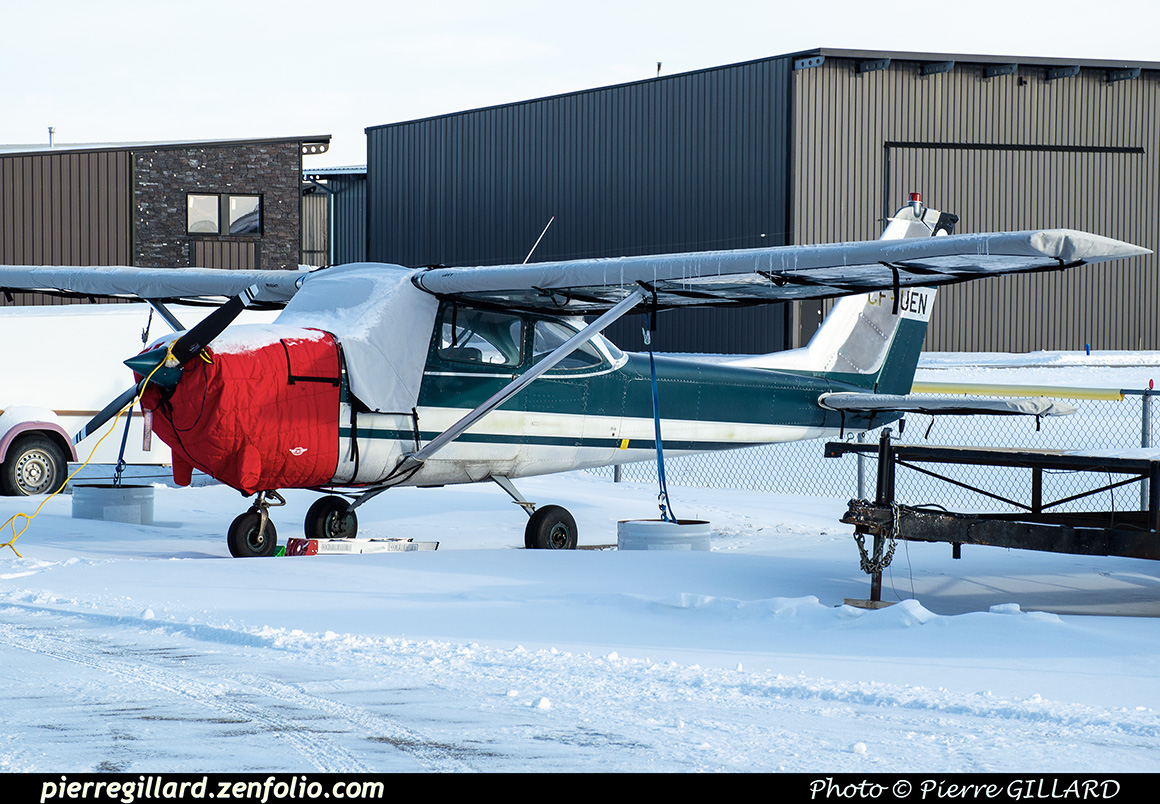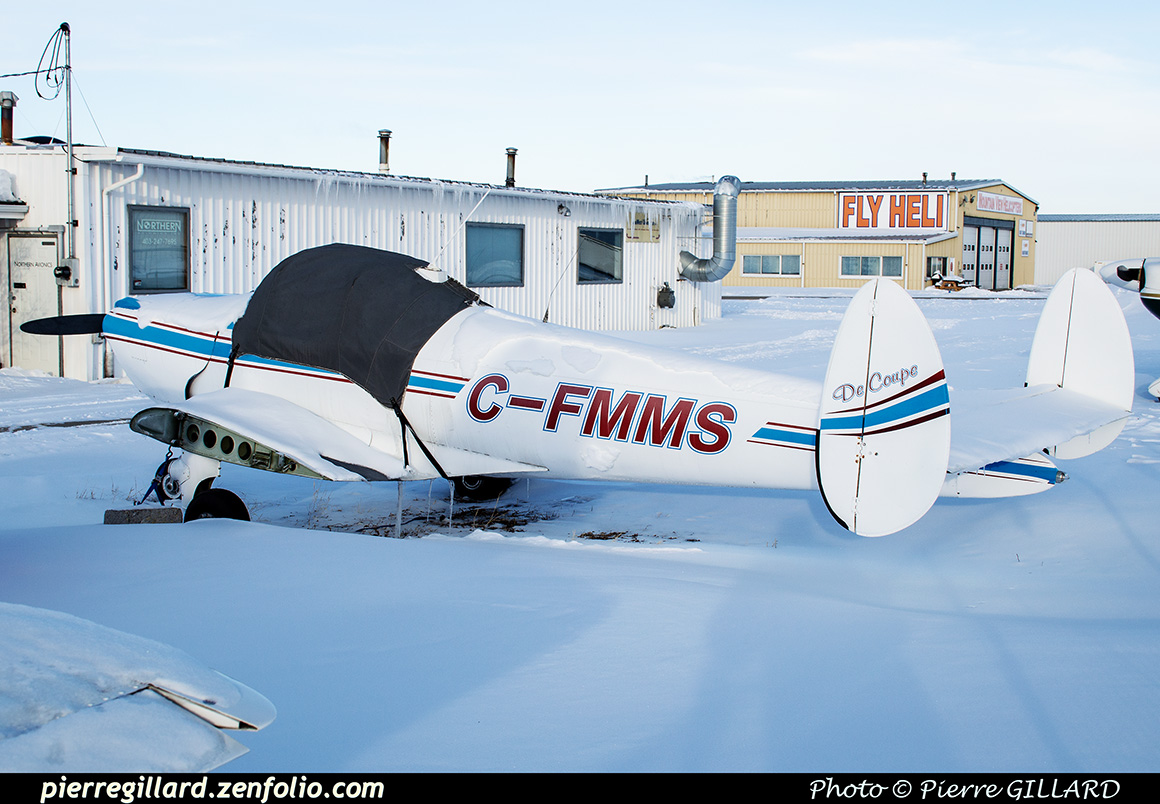 Après la visite des musées militaires, en route vers notre hôtel à Cochrane, nous nous devons de faire le tour de ce vaste aéroport. Étant l’hiver et sous la neige, il n’y a pas beaucoup d’activités et de mouvements. Nous prenons, donc, ça et là quelques photos des avions situés à proximité des clôtures. Parmi les "pièces plus rares", nous pouvons voir un Beechcraft Duke (C-FBQC), un Cessna 303 Crusader (N303AB), un fuselage d’Ercoupe (C-FMMS) ainsi qu’une réplique d’un Yak (C-FLGP) en construction amateur. |