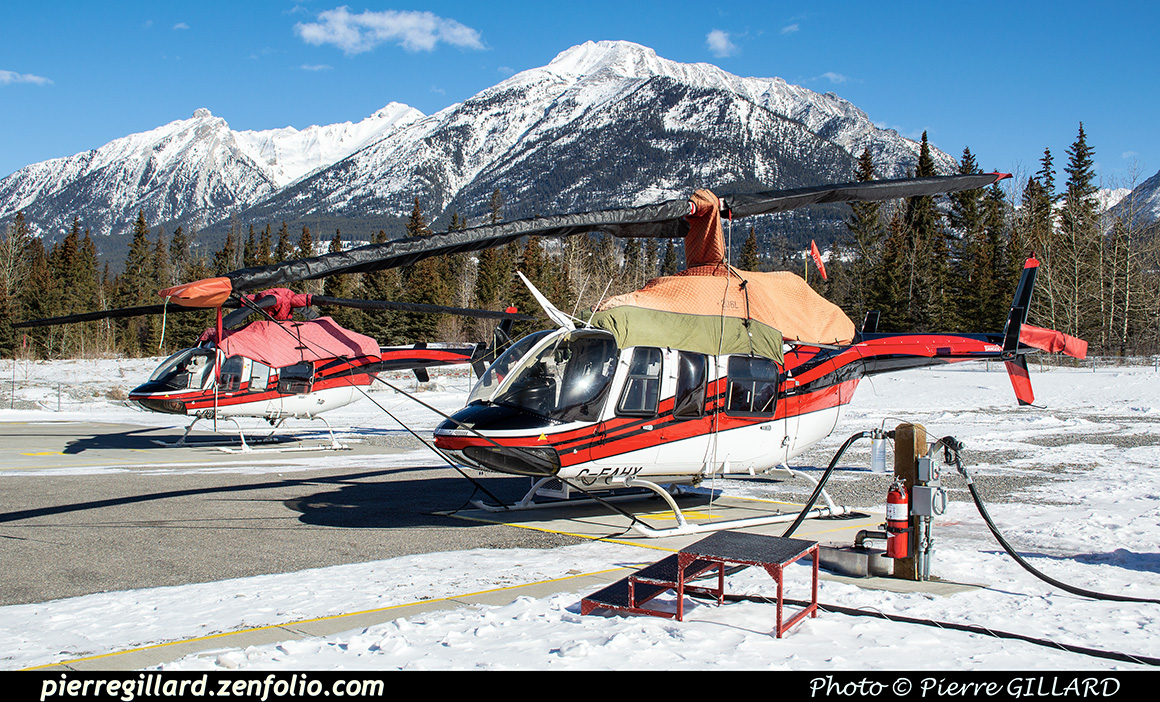 | C-FAHX Bell 206L-1 LongRanger II MSN 45419 & C-GLMV Bell 206L-1 LongRanger II MSN 45430, Alpine Helicopters - Canmore, AB - CEW9 - 12-03-2023. |
