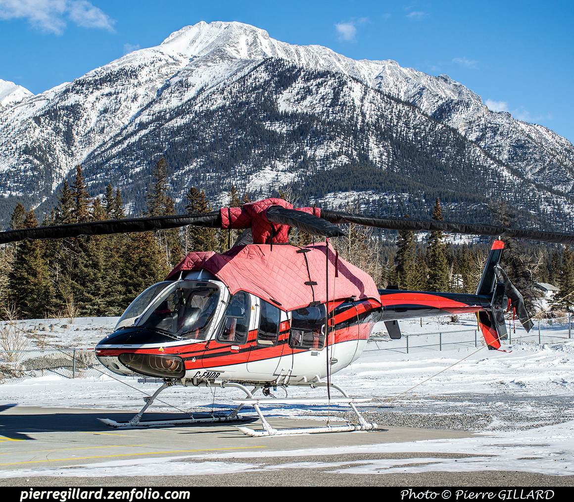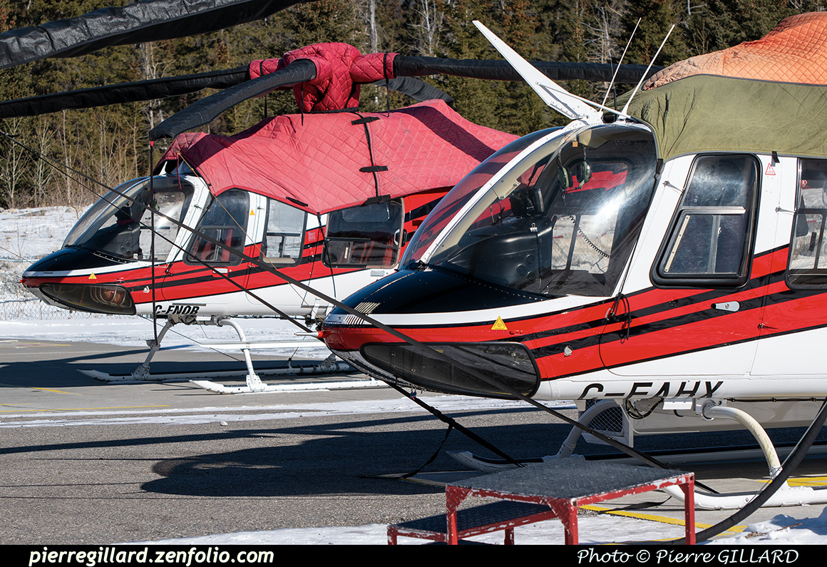 Ayant déjà eu l’occasion de m’y rendre à plusieurs reprises en 2005, 2007 et 2008, j’y retourne aujourd’hui accompagné de mes deux amis, Nicolas et Pierre. Lorsque nous arrivons à l’héliport, trois hélicoptères sont stationnés sur leur pad bien emmitouflés dans leurs couvertures et protections : il y a un Bell 206L LongRanger (C-FAHX) ainsi que deux Bell 407 (C-FALU et C-FNOB). Un second Bell 206L (C-GLMV) est en vol et doit arriver un quart d’heure plus tard. |