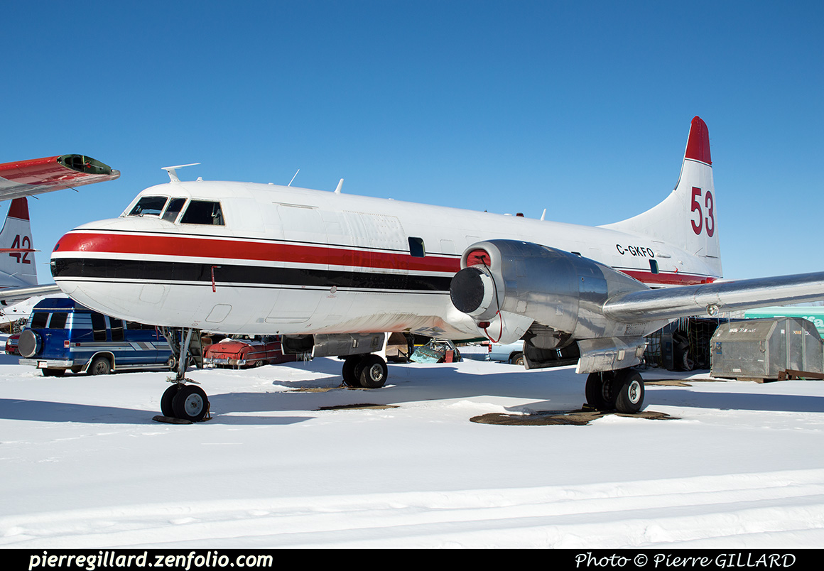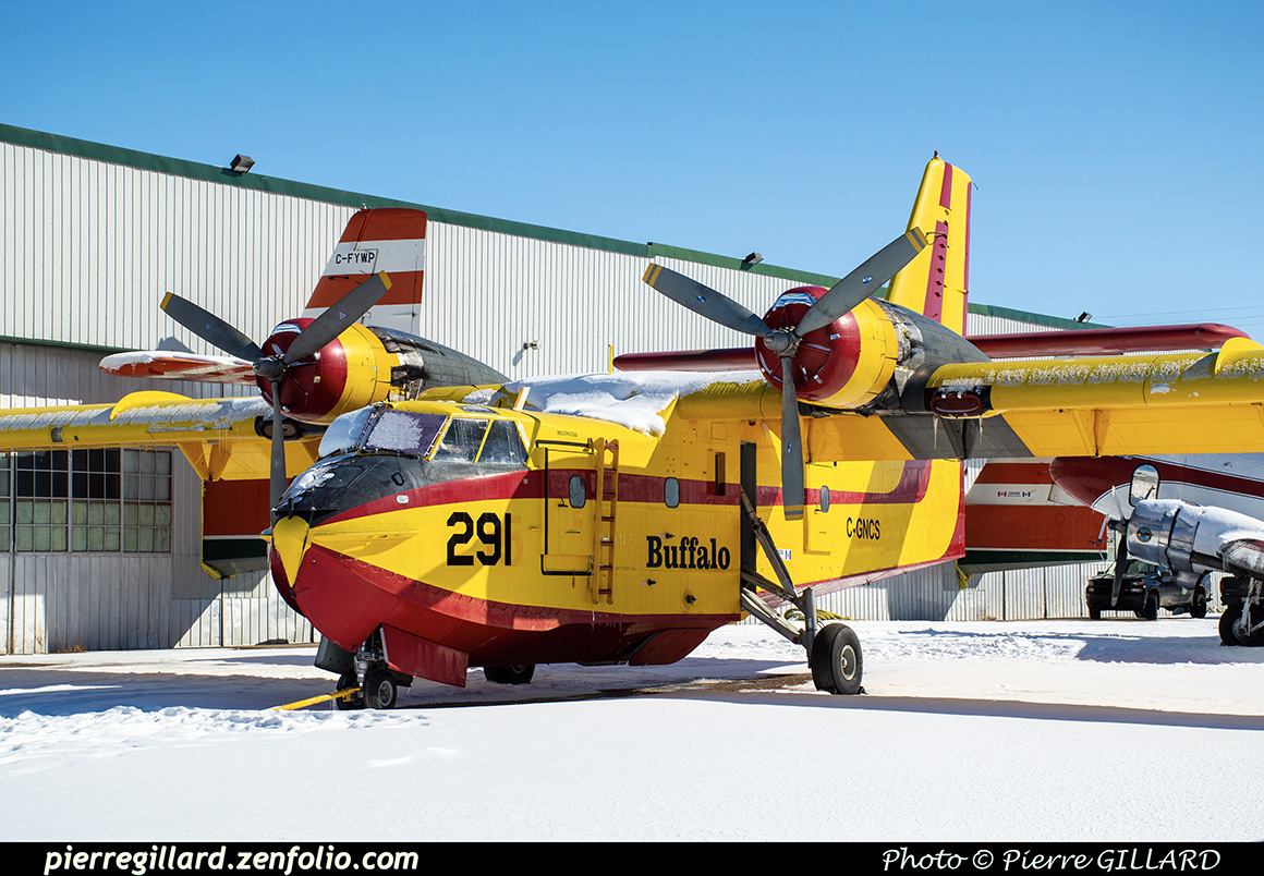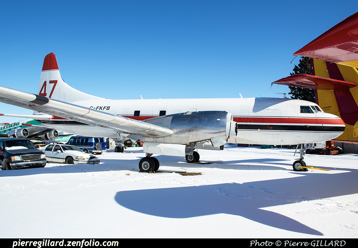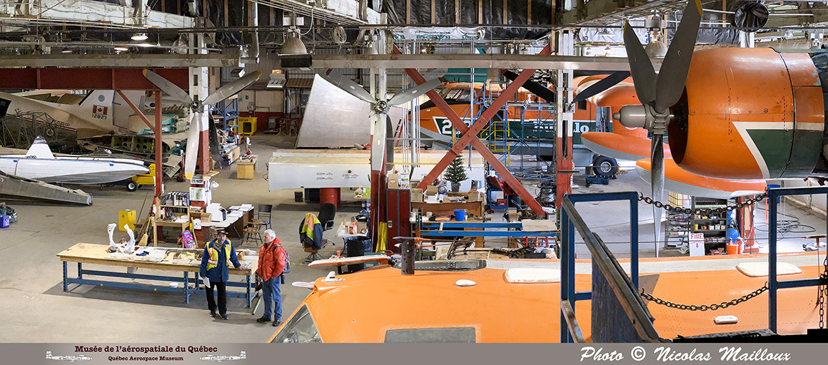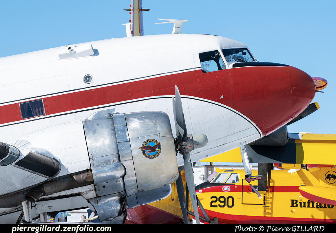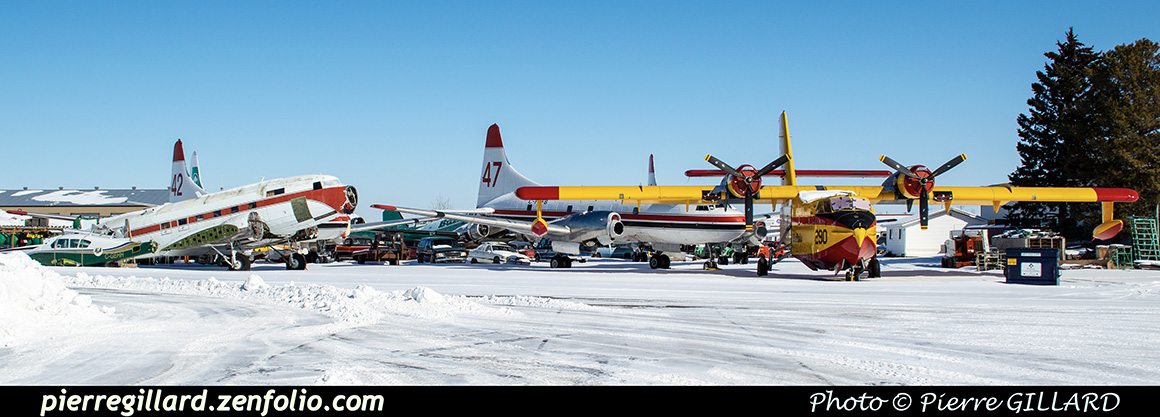 Nous effectuons ensuite le tour du propriétaire où nous observons des Canadair CL-215, des Convair 580, des DC-3 et des Lockheed L.188 Electra. Dans le Hangar 3, il y a encore deux DC-3, un Beechcraft Baron équipé d’un FLIR, des fuselages de Beech King Air, le fuselage du Beech 18 qui était autrefois entreposé à l’extérieur, le Bell 206 Jet Ranger et le Robinson R22. Il y a aussi une structure de Norseman et deux CL-215 sont en maintenance. |