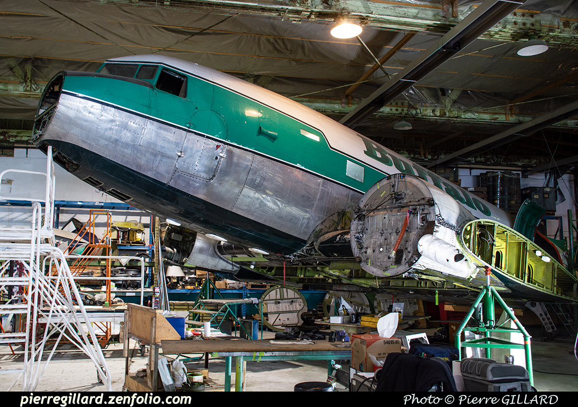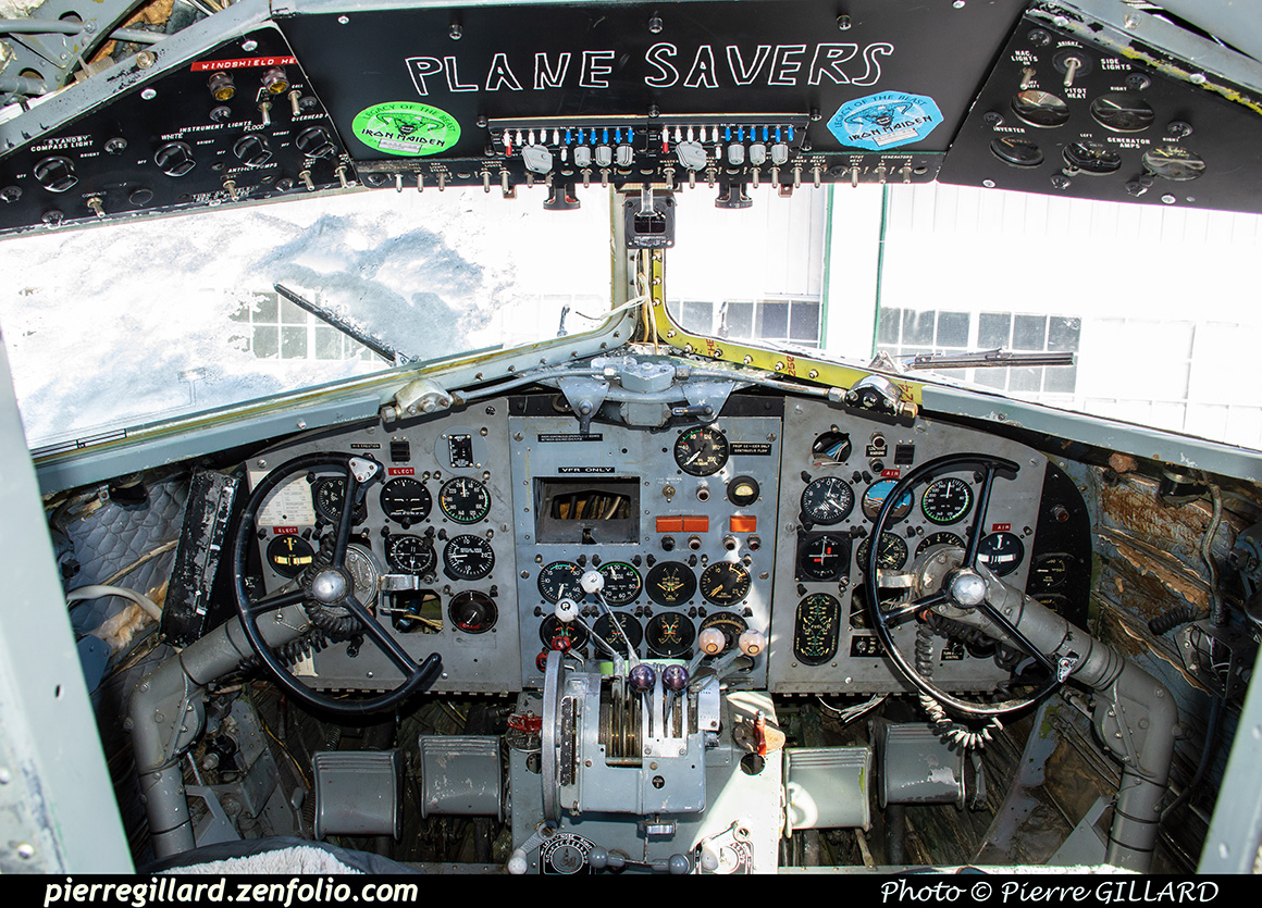 Un des buts de notre visite à Red Deer pour Nicolas "Save-the-Day-Nick" et pour moi est de revoir le Douglas DC-3 C-FDTD dans lequel nous avons investi bon nombre d’heures de travail en 2019 dans le cadre du projet Plane Savers de Mikey McBryan. Nous nous rendons, donc, chez Buffalo Airways où l’avion est entreposé. Tim, le responsable de la base, nous accueille et nous amène sans tarder à DTD. La porte est ouverte et nous montons à bord : de nombreux souvenirs nous reviennent en mémoire ! |