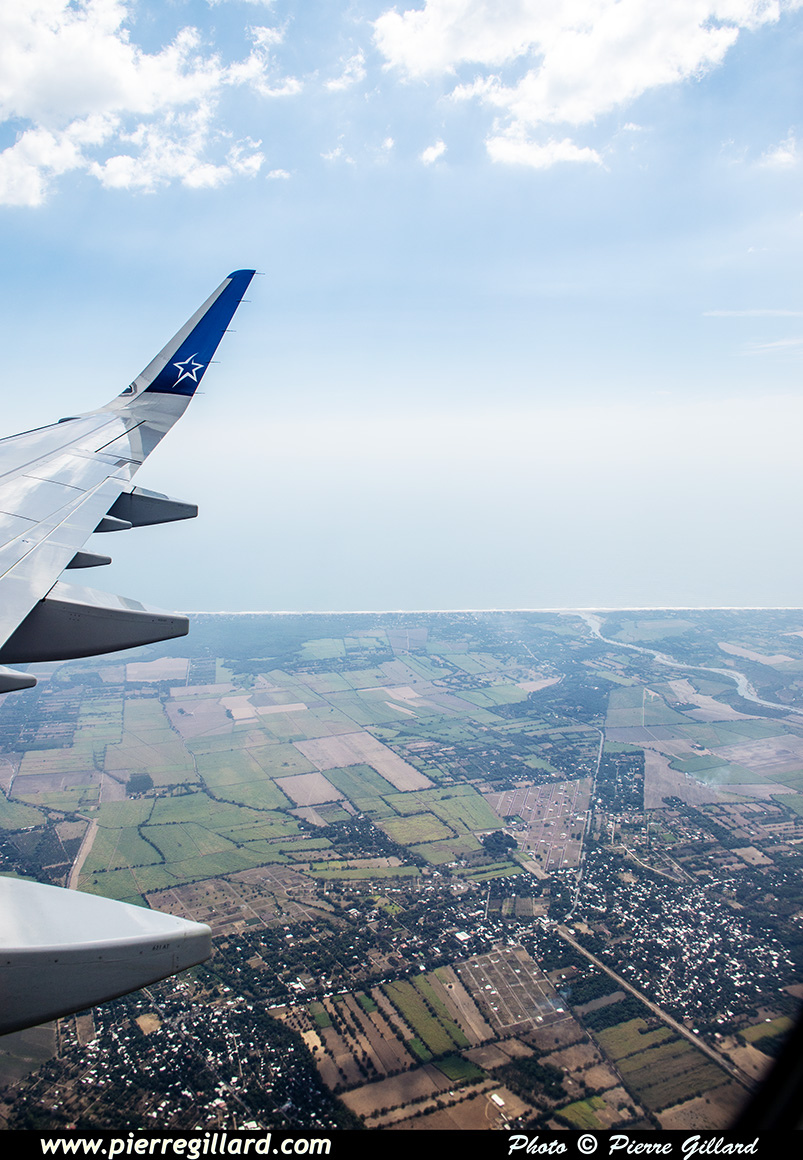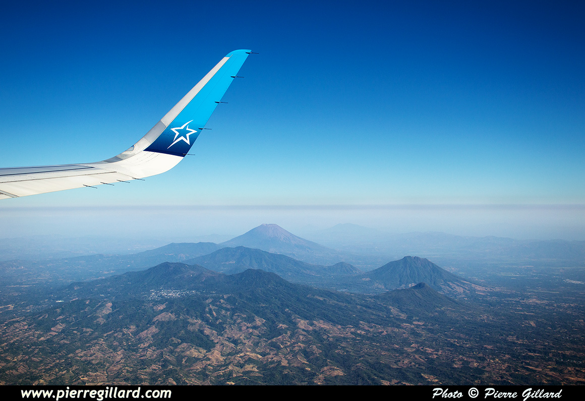 Le vol dure un peu moins de six heures. Puis c’est l’approche vers l’aéroport de San Salvador. En finale, je constate qu’il y a une petite base militaire américaine où je note un Boeing P-8A Poseidon de la U.S. Navy, un Lockheed HC-130J de la U.S. Coast Guard et un Lockheed AC-130J Ghostrider de la U.S. Air Force. Il est vrai que Donald s’entend bien avec le Salvador ... |