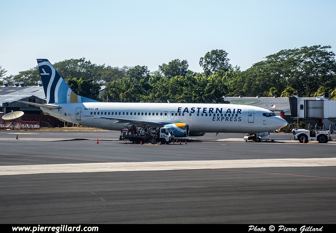 Je note, toutefois, un numéro de vol bizarre prévu au niveau des arrivées sur FlightAware : TYSON46 … Aucun nom de compagnie n’est indiqué et je dois donc attendre un peu afin de découvrir cet avion mystérieux. Il s’agit, en fait, du Boeing 737-484 N149XA d’Eastern Air Express. |