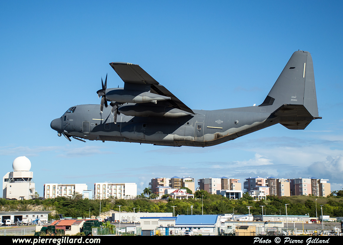 Lundi 12 janvier 2026. Aujourd’hui, nous avons loué une voiture pour effectuer un tour touristique de l’île de Saint-Martin et aller visiter Philipsburg. Toutefois, avant de nous mettre en route, nous souhaitons, bien entendu, voir décoller le Lockheed MC-130J Commando II de la U.S. Air Force arrivé hier. Et l’équipage de celui-ci, en décollant sur la piste 28, nous gratifie d’un magnifique passage à basse altitude devant la terrasse du D’s Beach Bar & Grill ! |
