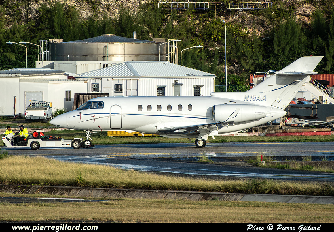 En fin d’après-midi, au terme de notre tour touristique de l’île, nous retournons, bien évidemment à notre repaire favori afin de photographier les derniers mouvements de la journée. Voici donc la "moisson" de cette petite journée de spotting à l’aéroport de Philipsburg Pincess Juliana. À noter les Hawker 900XP N18AA et N17RM dont les numéros de série se suivent (HA-0068 et HA-0069 respectivement). |