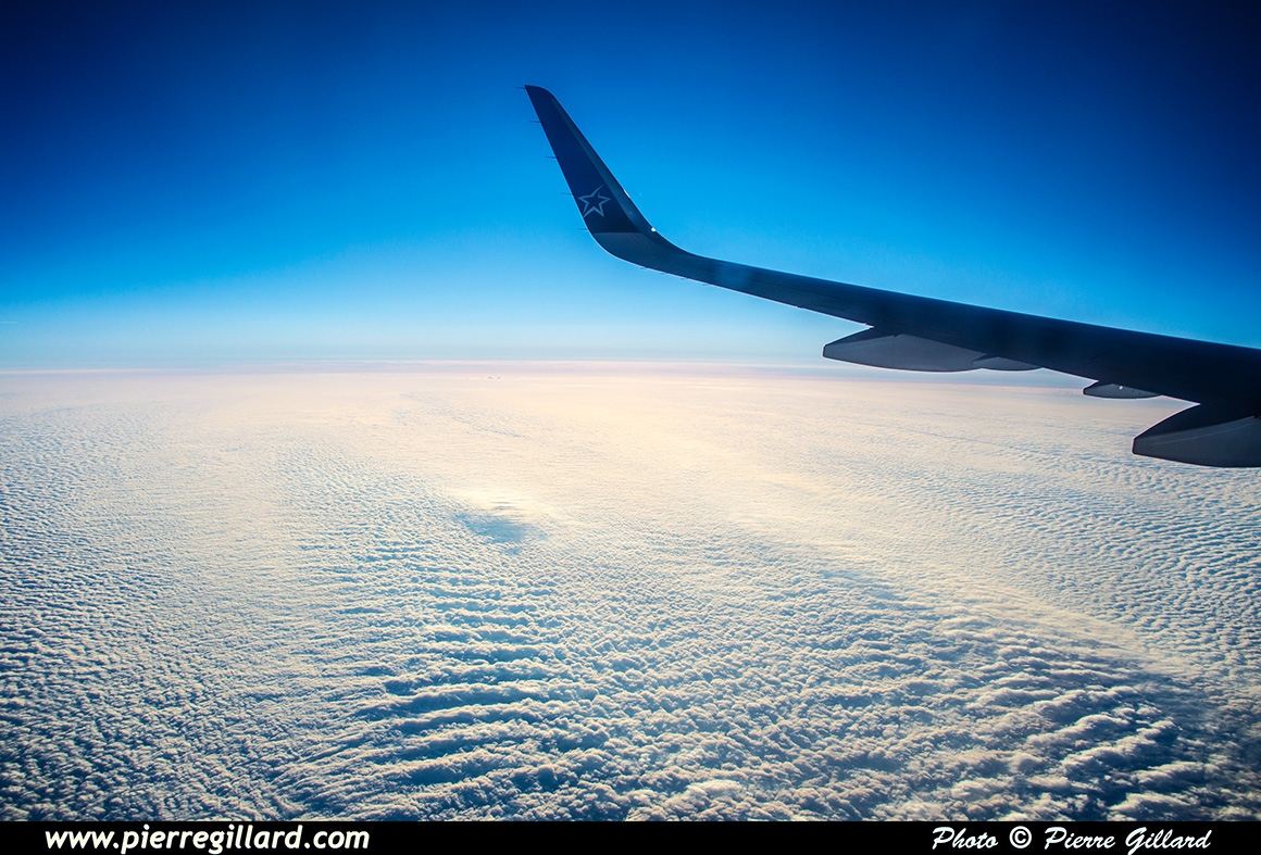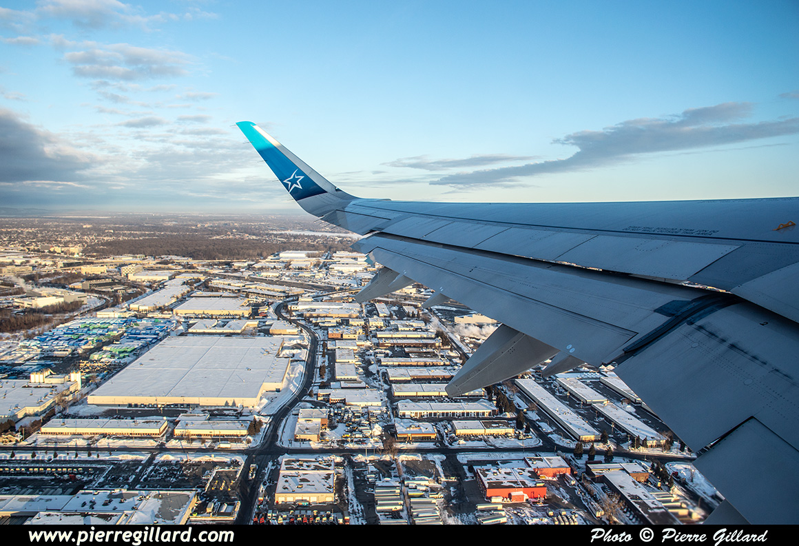 L’embarquement de notre vol TS738 se déroule avec une discipline exemplaire et finalement, le refoulement (pushback) a lieu sept minutes avant l’heure de départ officielle. Un bref passage à l’aire de dégivrage et nous décollons ensuite de la piste 06L. |