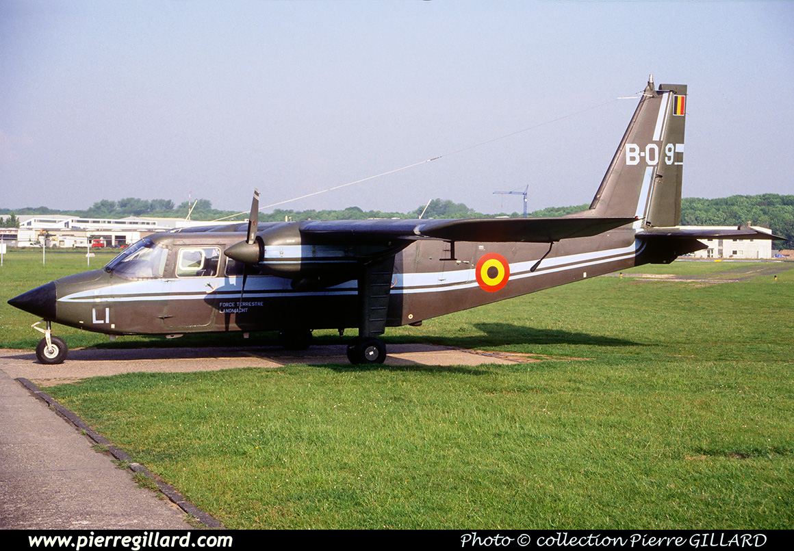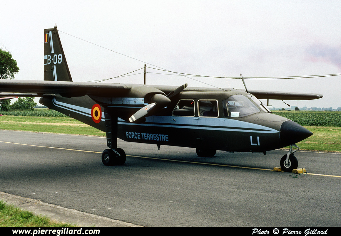 | B-09/OT-ALI Britten Norman BN-2A-21 Islander MSN 533, Force Terrestre-Landmacht - Koksijde - EBFN - 02-07-1995. |