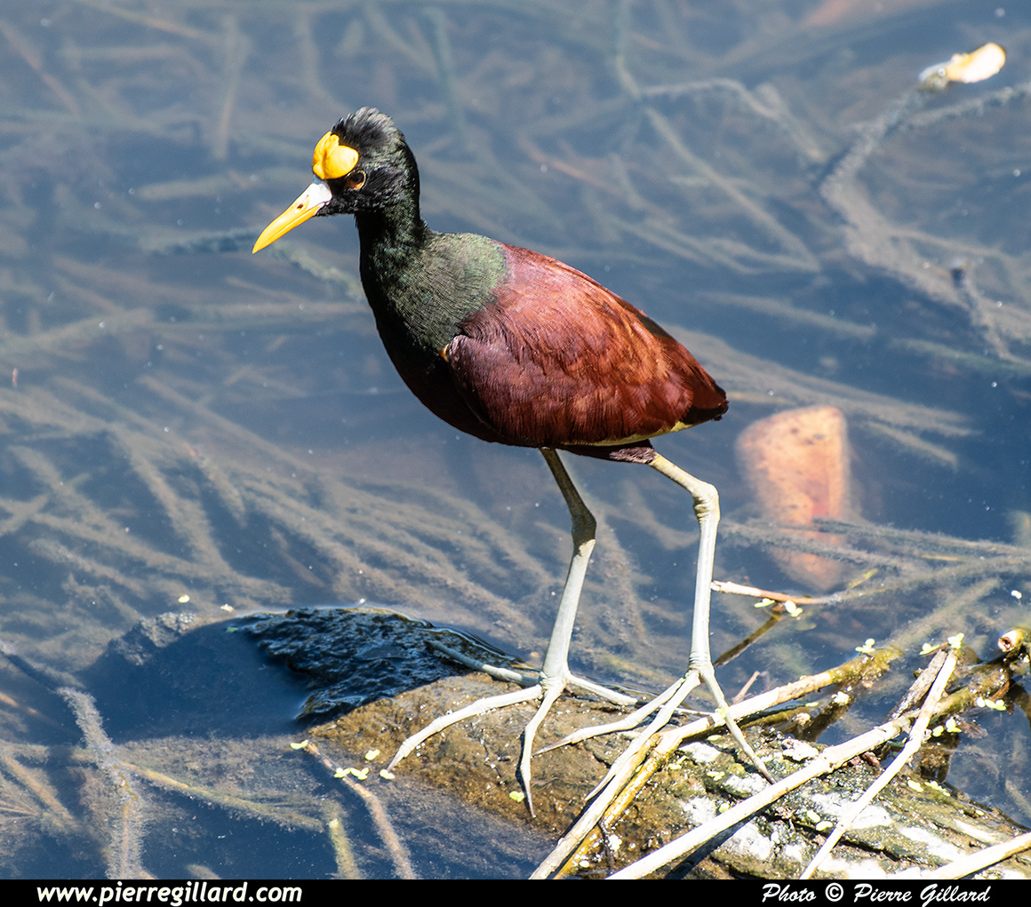 À noter que derrière notre bloc de logements (le bloc No. 3 !), nous avions un vaste étang où on pouvait admirer différentes sortes d’oiseaux. À certains endroits, on n’était pas loin d’un décor de mangrove, ce qui a donné de beaux arrière-plans à certaines vues. J’ai aussi pris plusieurs photos le long d’un petit cours d’eau aboutissant sur la plage où bon nombre d’oiseaux venaient "prendre leur bain", se désaltérer ou même se nourrir. Là, j’ai même vu deux urubus se délecter d’un cadavre d’iguane … |