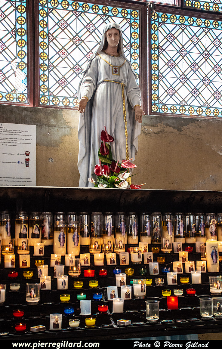 Puis nous rejoignons la cathédrale Saint-Louis par la rue Antoine Siger. Nous y pénétrons par une entrée latérale et nous allons nous installer sur un banc afin de nous reposer quelque peu. Dieu seul sait si nous lui demandons des indulgences pour nos nombreux péchés … |