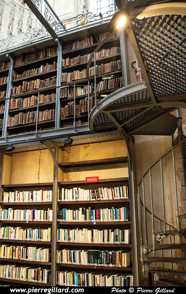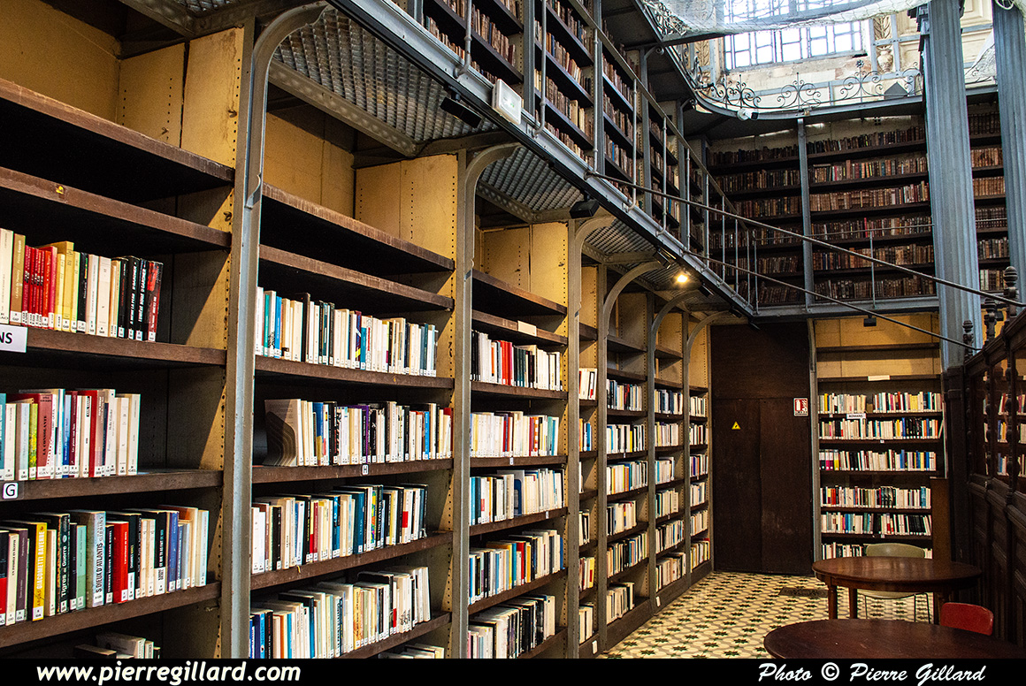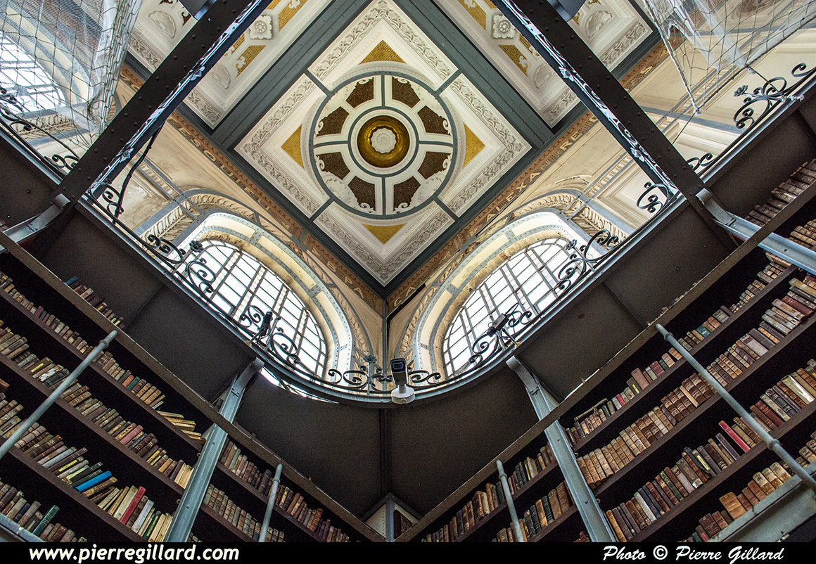 Il s’agit d’un magnifique édifice dont l’accès est public. Dans le bâtiment principal se déroule une exposition de peinture. Sur les murs latéraux, les livres sont soigneusement rangés sur deux étages. Malheureusement, il n’est pas possible de photographier la voute et le dôme vitré, car un filet de protection a été installé. |