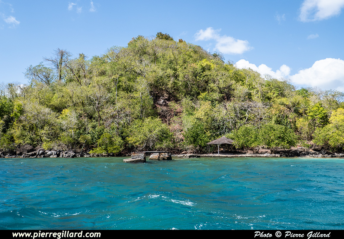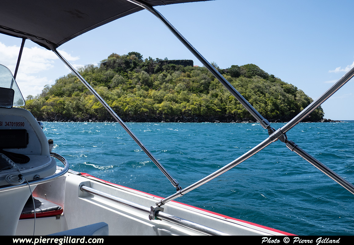 À vitesse réduite, nous contournons la Point de Bout et passons successivement devant l’Anse Mitan où se trouve notre hôtel et l’Anse à l’Âne. Nous poursuivons en longeant l’Îlet Ramier qui a servi de fort, d’hôpital militaire ainsi que de lieu de villégiature pour les militaires postés en Martinique. Actuellement, l’îlet est abandonné et il ne subsiste qu’un ponton en ruines ainsi que les restes du fort. |