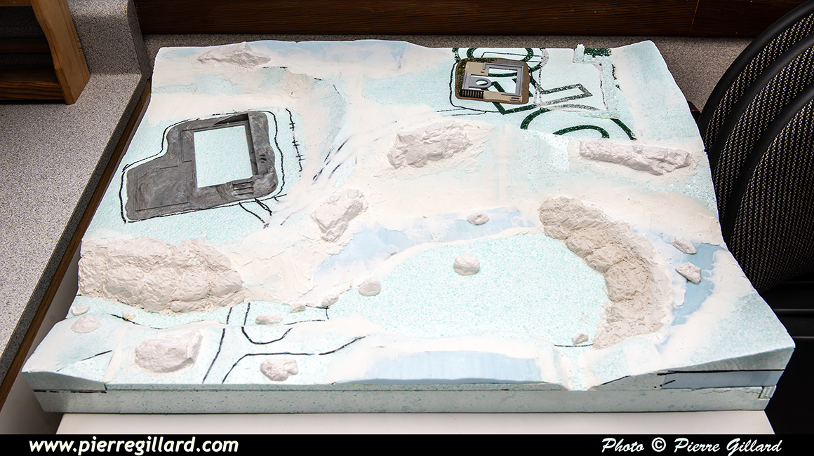 Je débute, donc, en réalisant une structure grossière faite d’éléments de styromousse donnant une première idée du relief du module. |