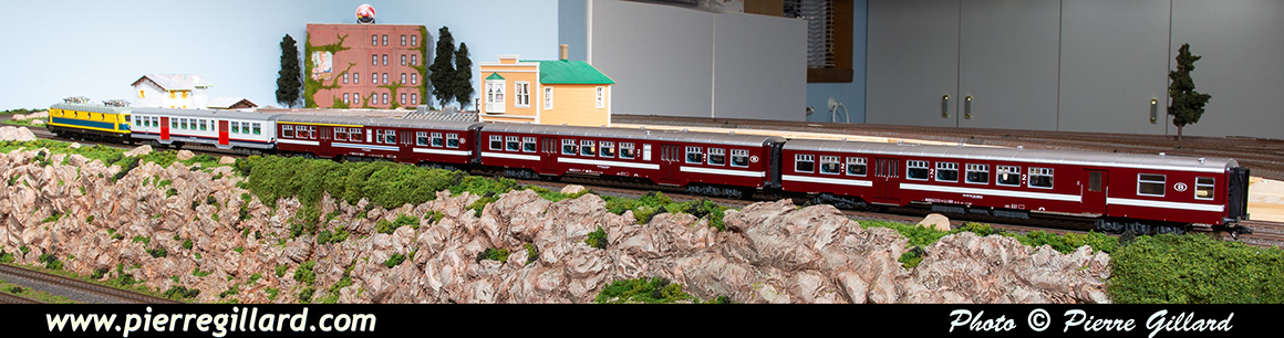 | Convoi de voitures de voyageurs M2 Märklin # 43530 tracté par la locomotive diesel série 55 Märklin # 37672 - Longueuil, QC - 06-04-2026. |