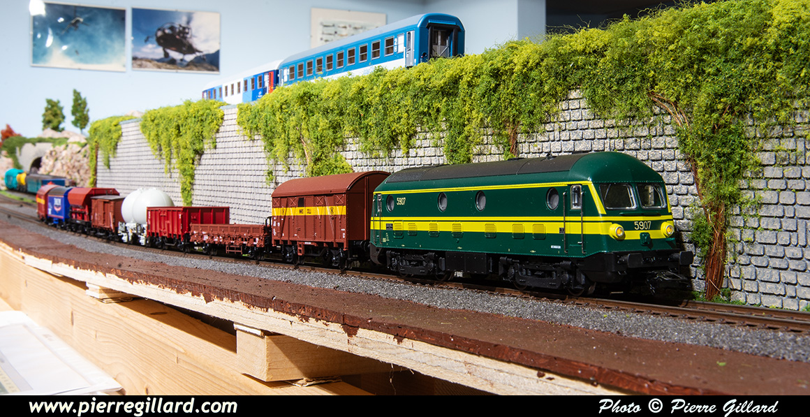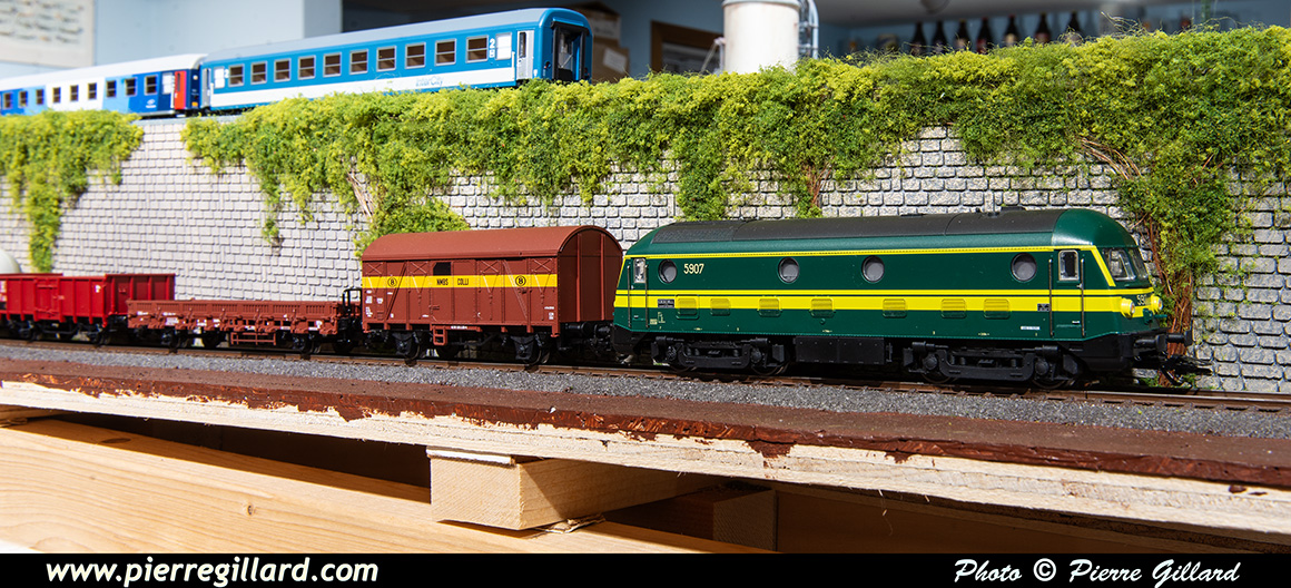 | Train de marchandises belge composé du très bel ensemble de wagons Märklin # 47877 tracté par la locomotive de manœuvre diesel S.N.C.B. # 8024 Märklin # 3149 - Longueuil, QC - 06-04-2026. |